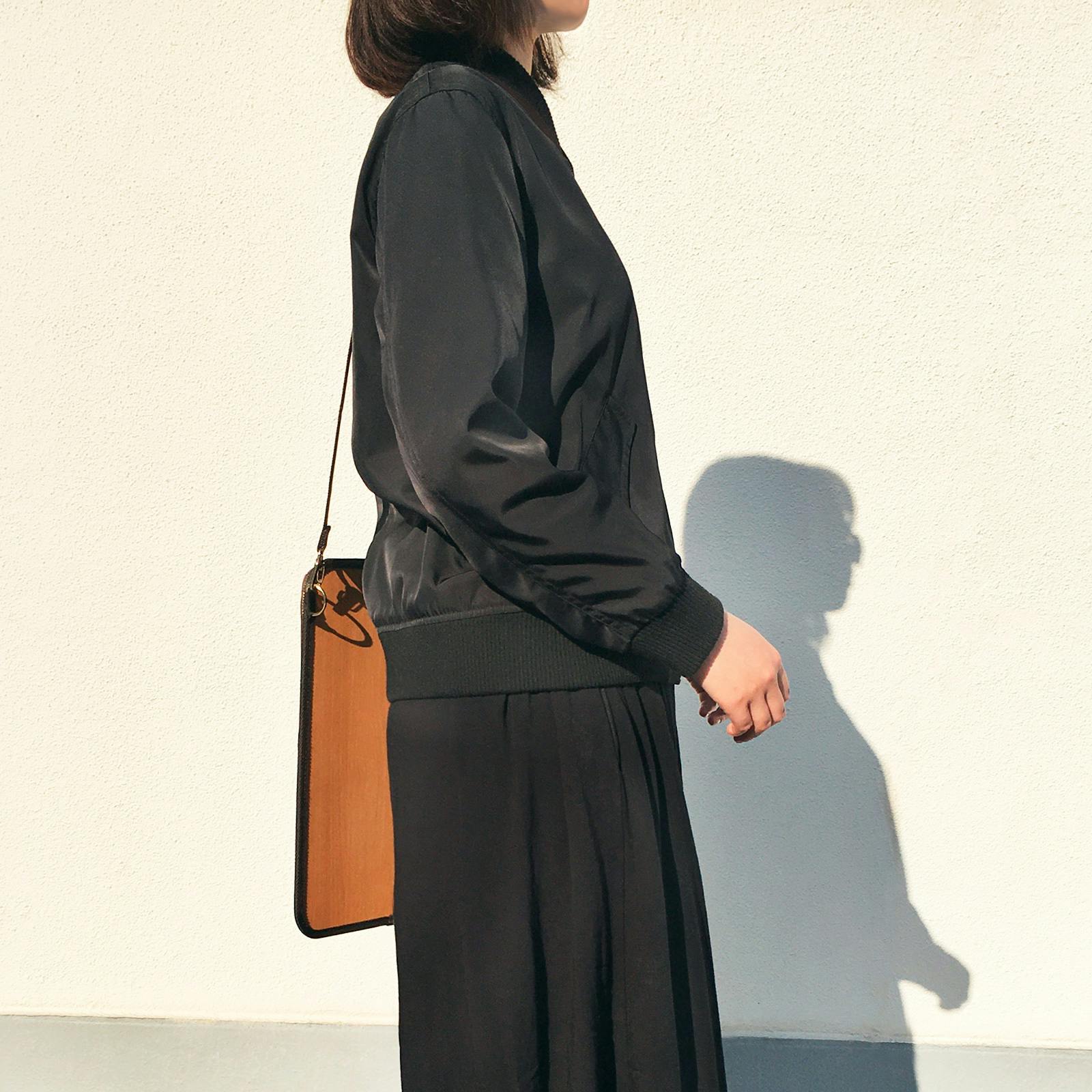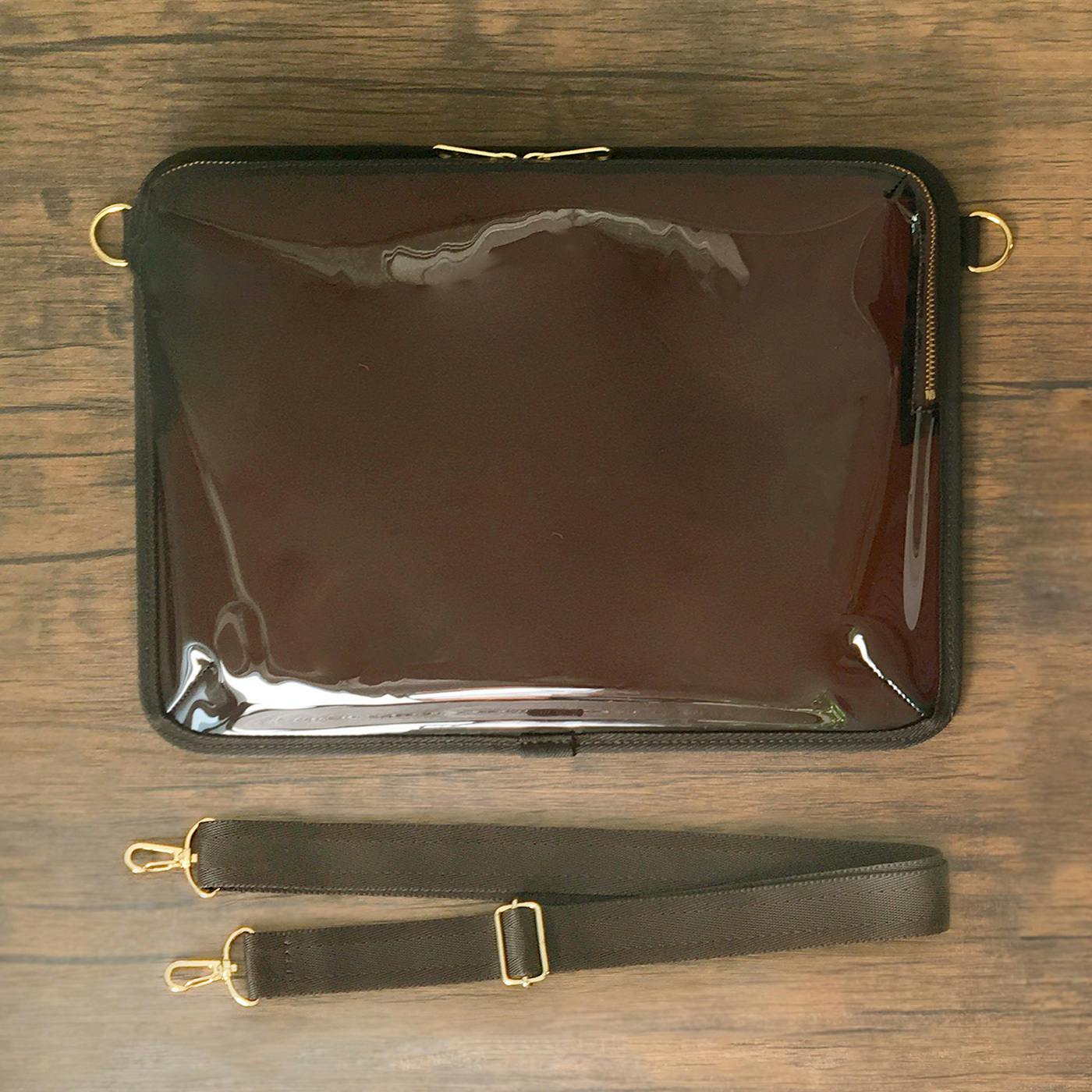 クリアブラウンのビニール素材と木目素材を組み合わせた、大人っぽいシックなアイテムです。