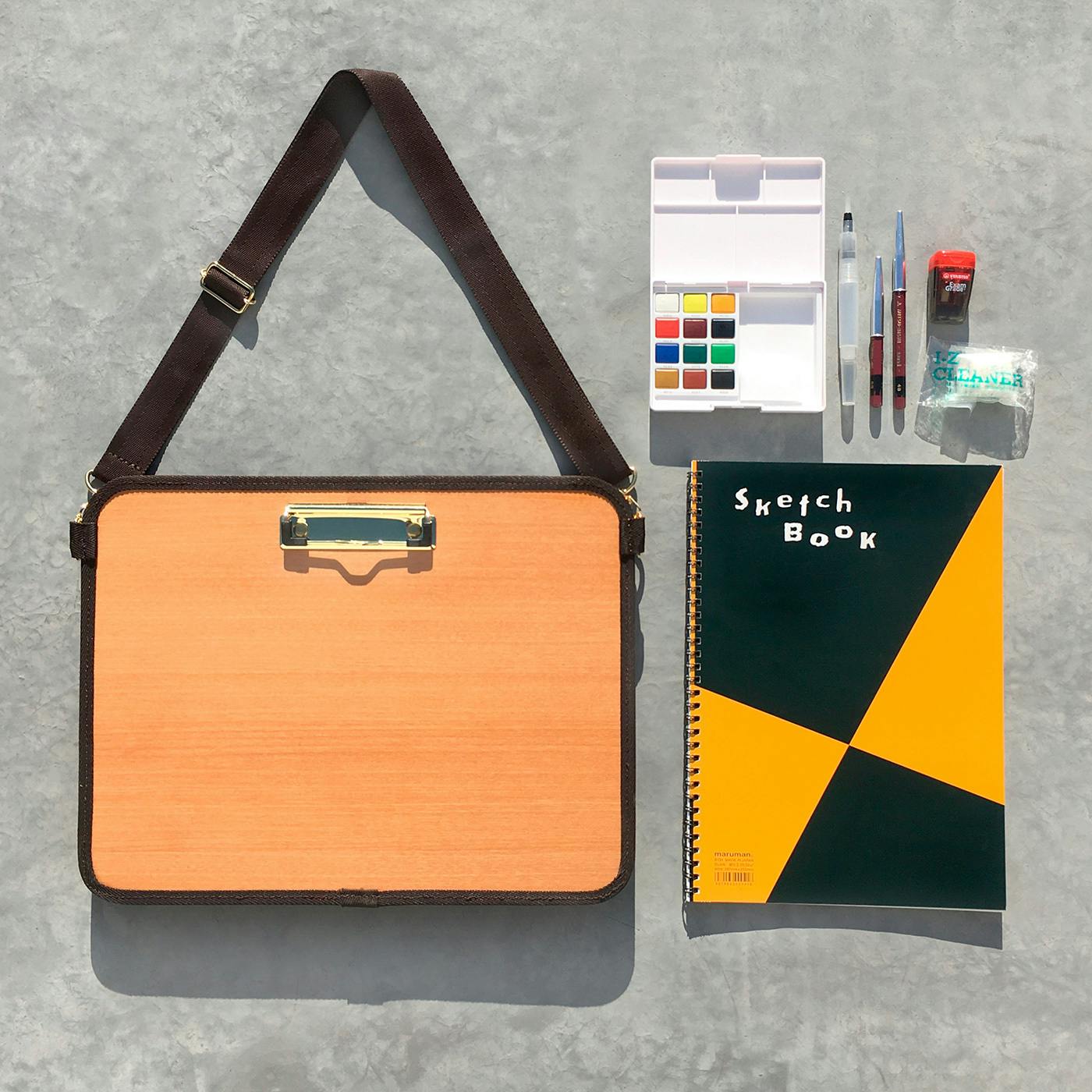 しかしそれらは、ボードの表面の方眼が紙の上から透けてしまったり、鮮やかな色で気が散ってしまったり、芯材の厚紙が水濡れでふやけてしまったり、袋が薄く最低限の画材を収納しきれなかったり、収納力があっても重くて持てなかったり、面ファスナーの開閉音が静かな場所で響きすぎてしまったり、無味乾燥なデザインで普段のファッションに調和しなかったりと、私にとって使いやすいものではありませんでした。