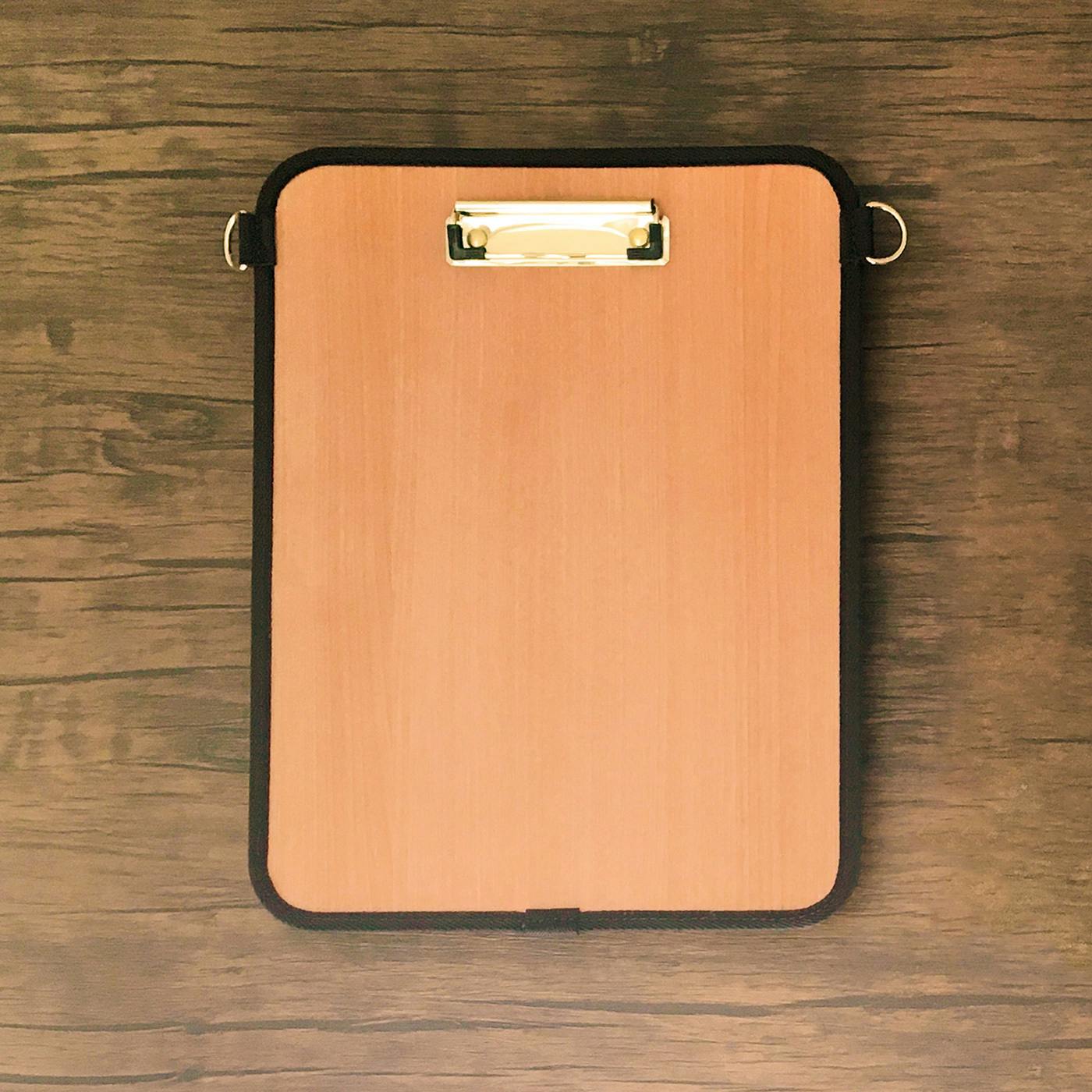 木目調のボードにゴールドのクリップを組み合わせたクリップボード部分は、大人っぽくおしゃれなデザインです。