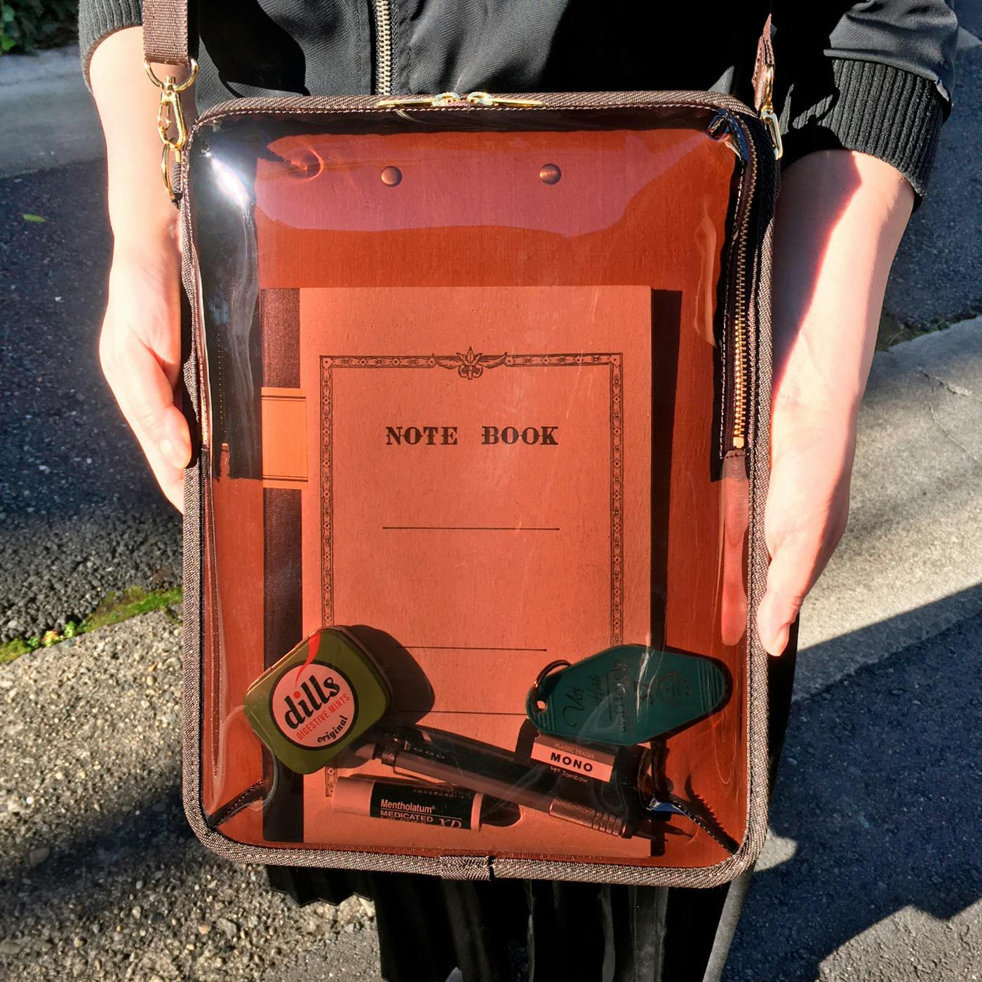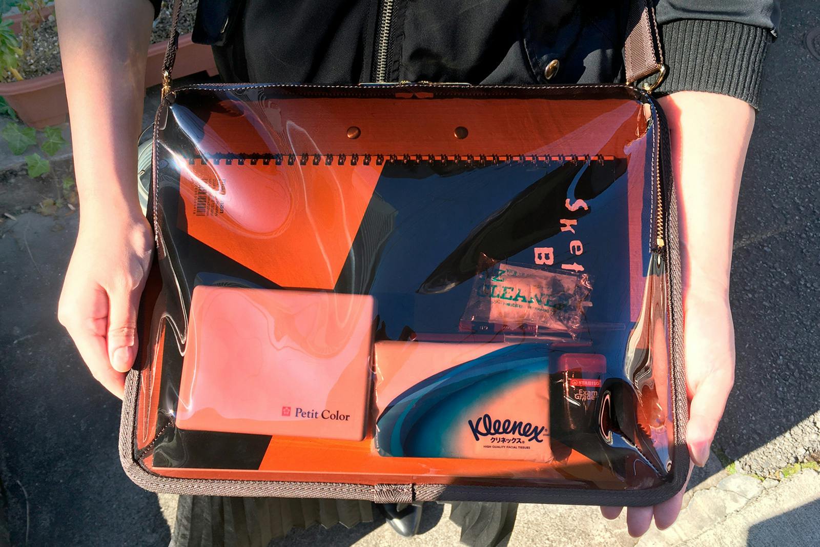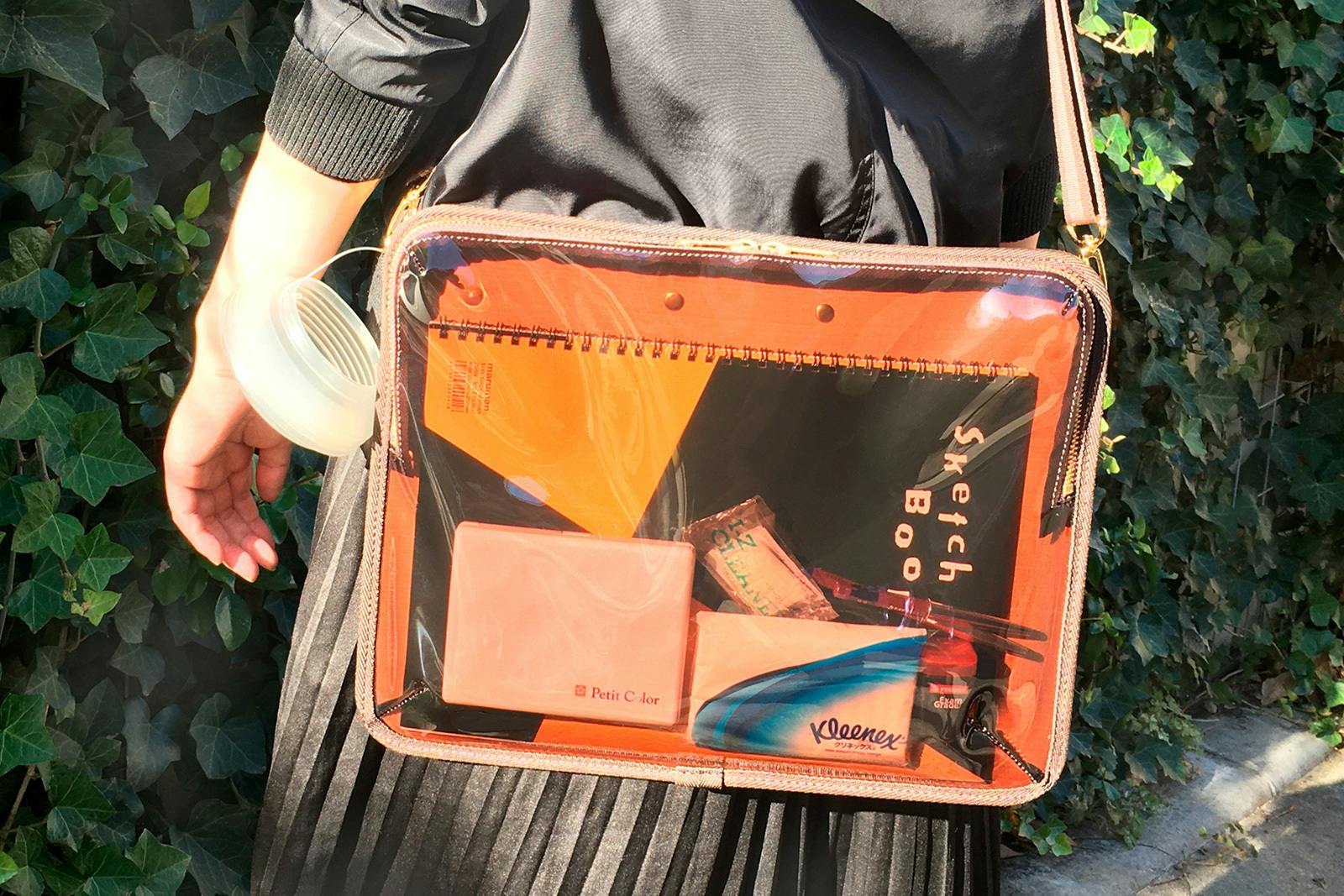 バッグの外から中身が見えるため、忘れ物の防止効果があります。
