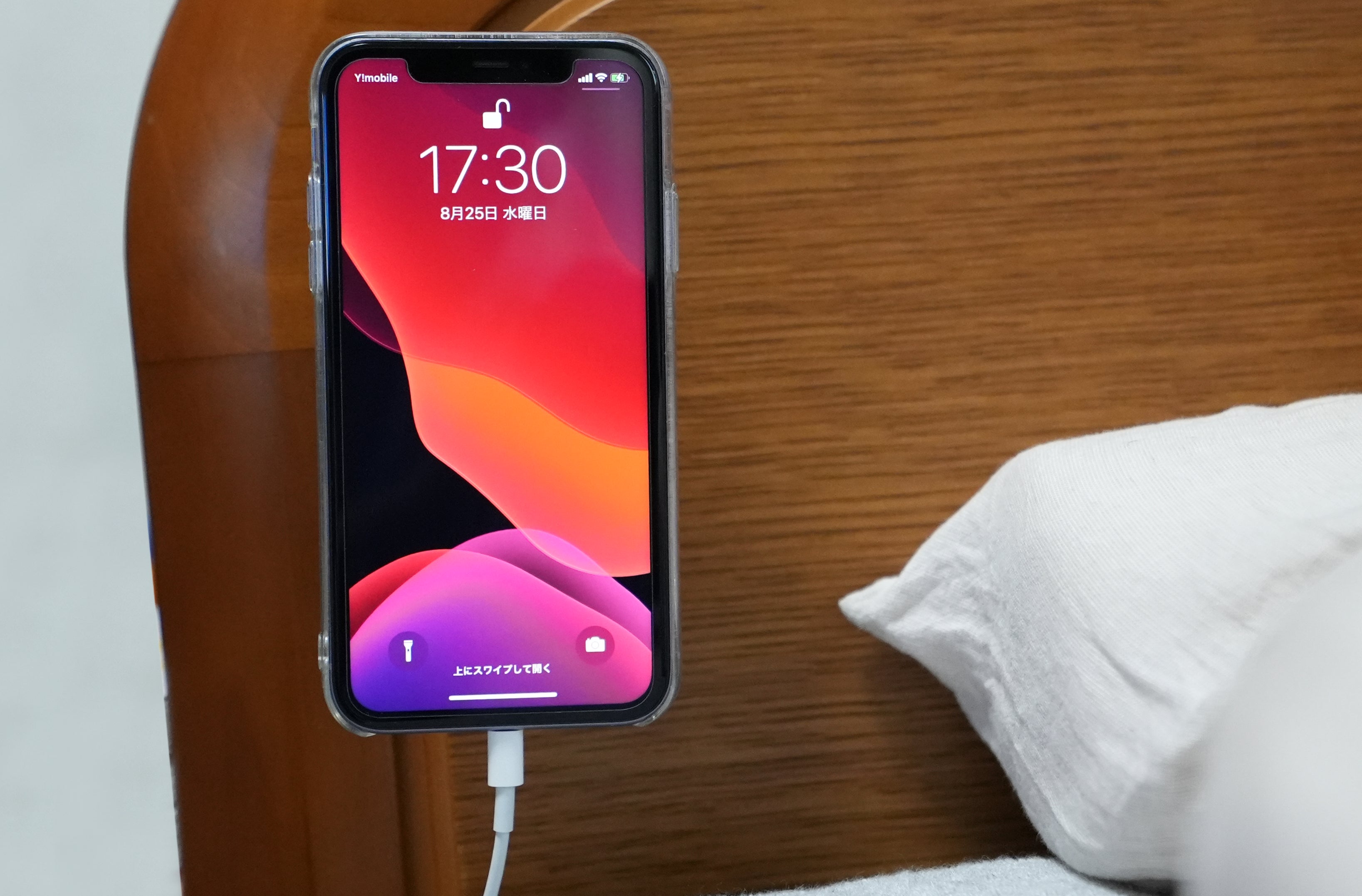 これまでベッドの枕元に携帯を置いていたのですが、寝返りをうったりしてスマホが落ちてしまうことが多々ありました・・・・アラームをかけるもベッドの下で鳴っていることも。