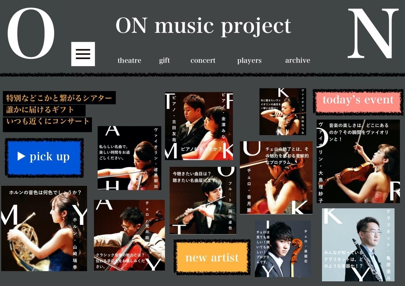 ① ON music projectとして継続してきた奏者の自主性の高いコンサートの「オンライン化/シンプル化」を行い、2つの取り組みを実現させたいと思います。