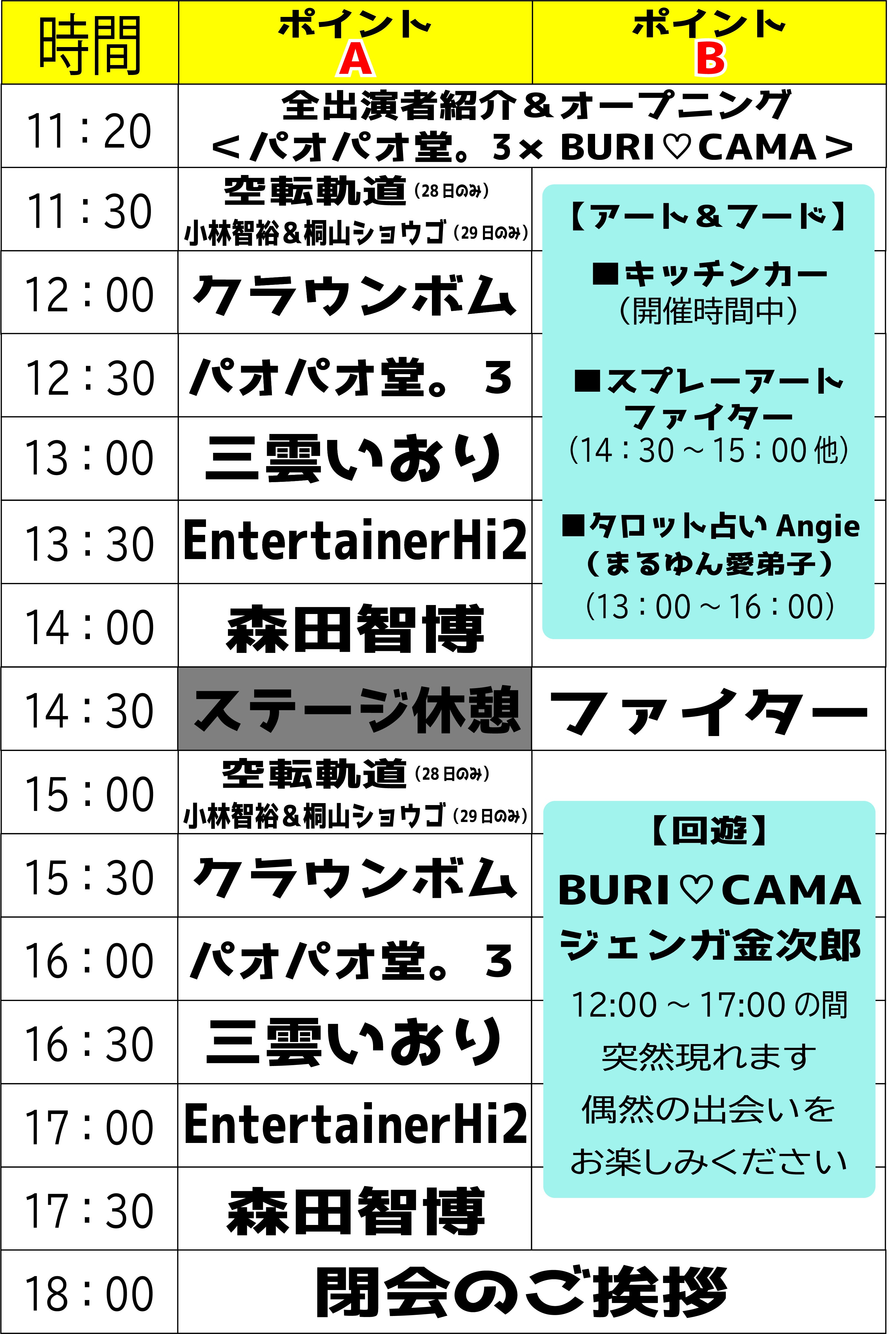 (「空転軌道」「小林智裕&桐山ショウゴ」以外は両日同じ時間での演技開始となります)