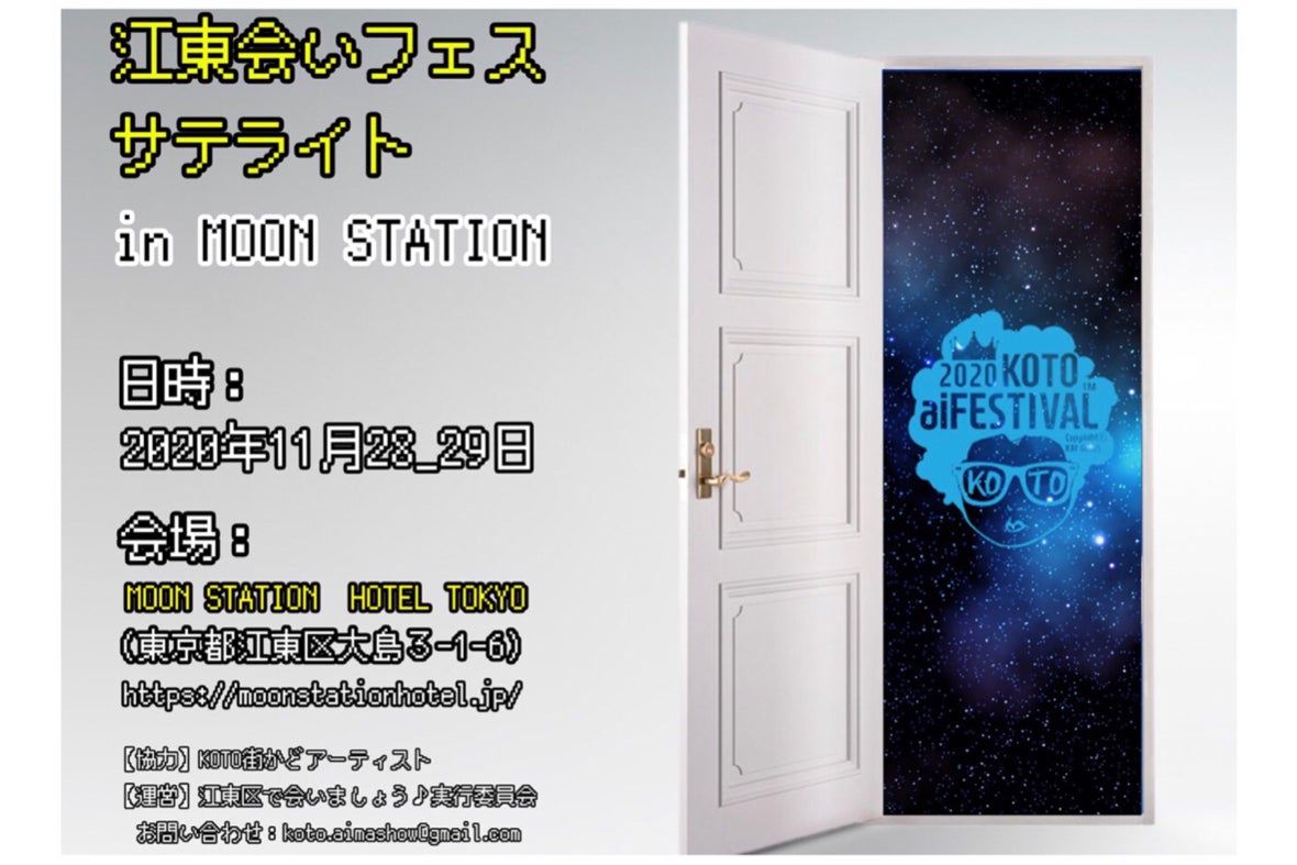 2020/12/01 21:4112月になりました。2020年は本当にあっという間でしたね。さて、報告が大変遅くなりまして申し訳ありません。11月28日(土)、29日(日)に江東会いフェス サテライト in MOON STATION、終了いたしました。(本当の終了は2週間後となりますが)多くの方のご支援・応援により開催することが出来ました。ご来場頂いた皆さまにも感謝申し上げます。この次も「江東区で会いましょう♪実行委員会」らしいイベントをお届け出来るよう、邁進いたします。皆さま、本当にありがとうございました! もっと見るクラファン終了のご報告、そして本日開催です!