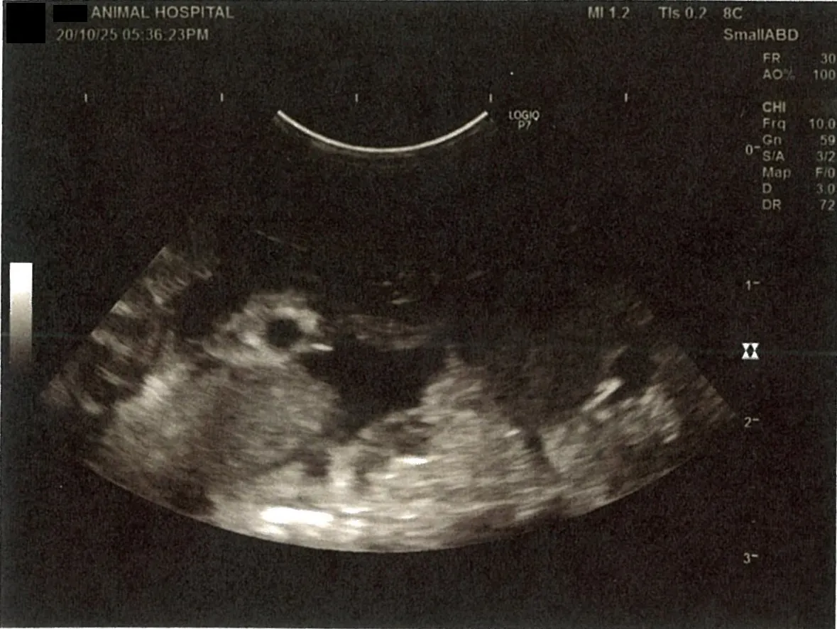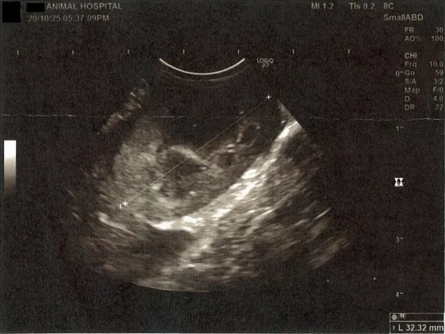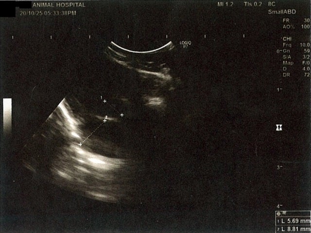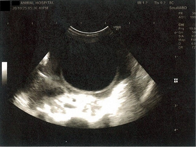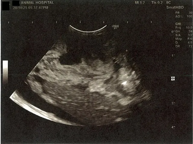 膀胱周りに腹水が確認できるエコー写真