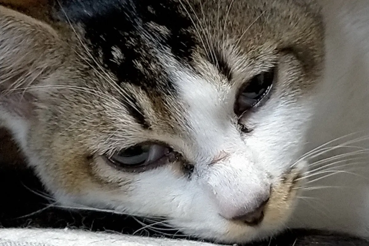 朝起きるとアイラがぐったりとして抱きかかえると体もかなり熱く左目が大量の目ヤニで開くことができません。
