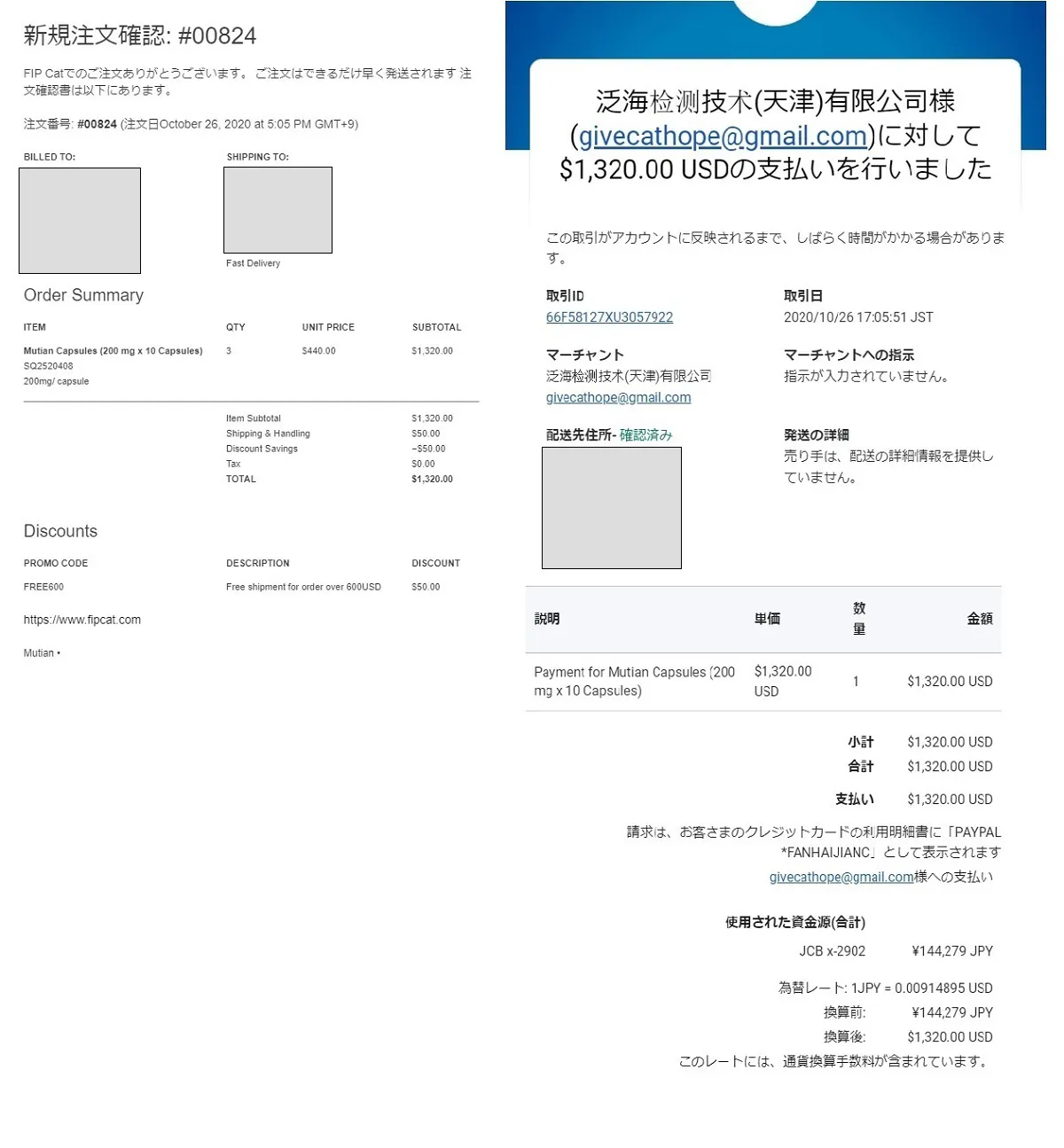 この日の夜は朝までFIPとムティアンについて調べ、いつ届くかわからないムティアンをネット上で購入しました。