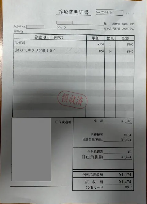 《検査費用です》