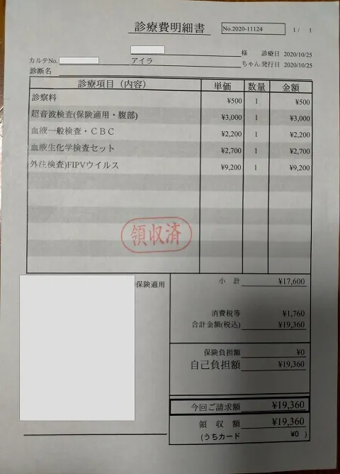 未承認の薬で理由はわからないがとても高額であり、現時点でFIPに有効な治療はムティアンだけで、他は対処方でしかない事を教えていただきました。
