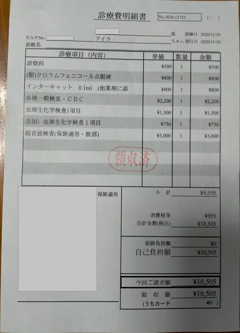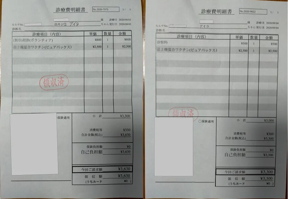※ 数字の金額は、領収書をもとに定期検診は病院側の概算値で医療費を算出させていただいております。