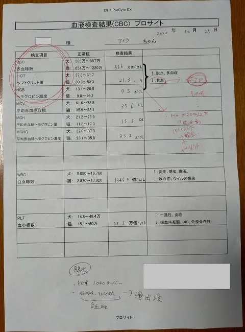 FIP診断時の血液検査