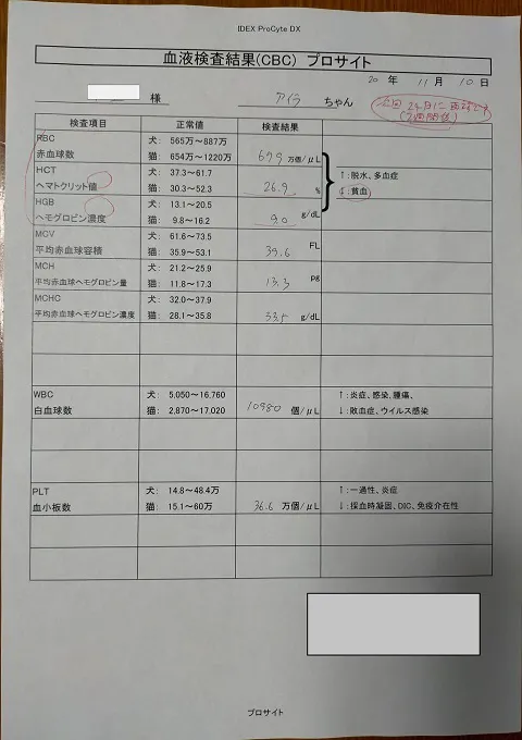 血液検査は、その更に1ヵ月後とその後3ヵ月後でFIPと疑われる項目が正常値であれば寛解となります。