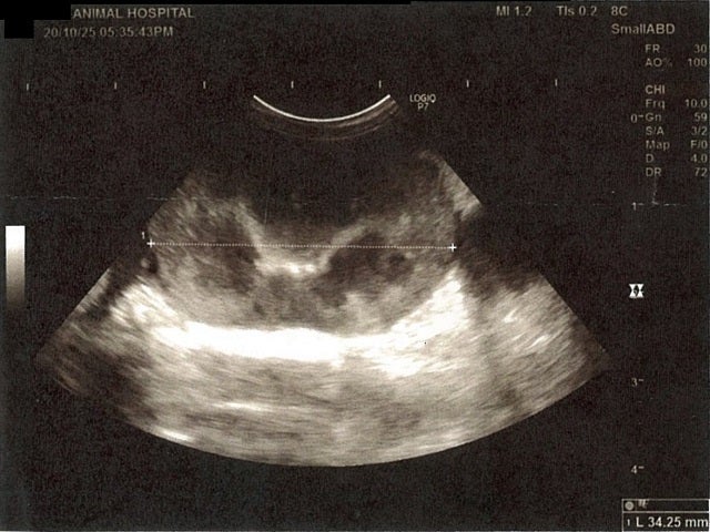 膀胱周りに腹水が確認できるエコー写真