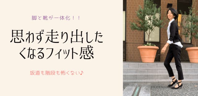 パンプスは足の甲の囲いがないので 歩き出すと前滑りをしてしまい足指が痛くなったりかかとが抜けていくので疲れてしまいます。