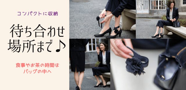 もちろん、むくみが気にならない方はつけたままでも問題はありませんが、足の甲がないのがパンプスの特徴なので 脚をキレイに魅せたいシーンは外しておけるのも BSSリマージュのメリットです。別売りのリマージュ専用ポーチに収納し、かばんに潜ませておきましょう。