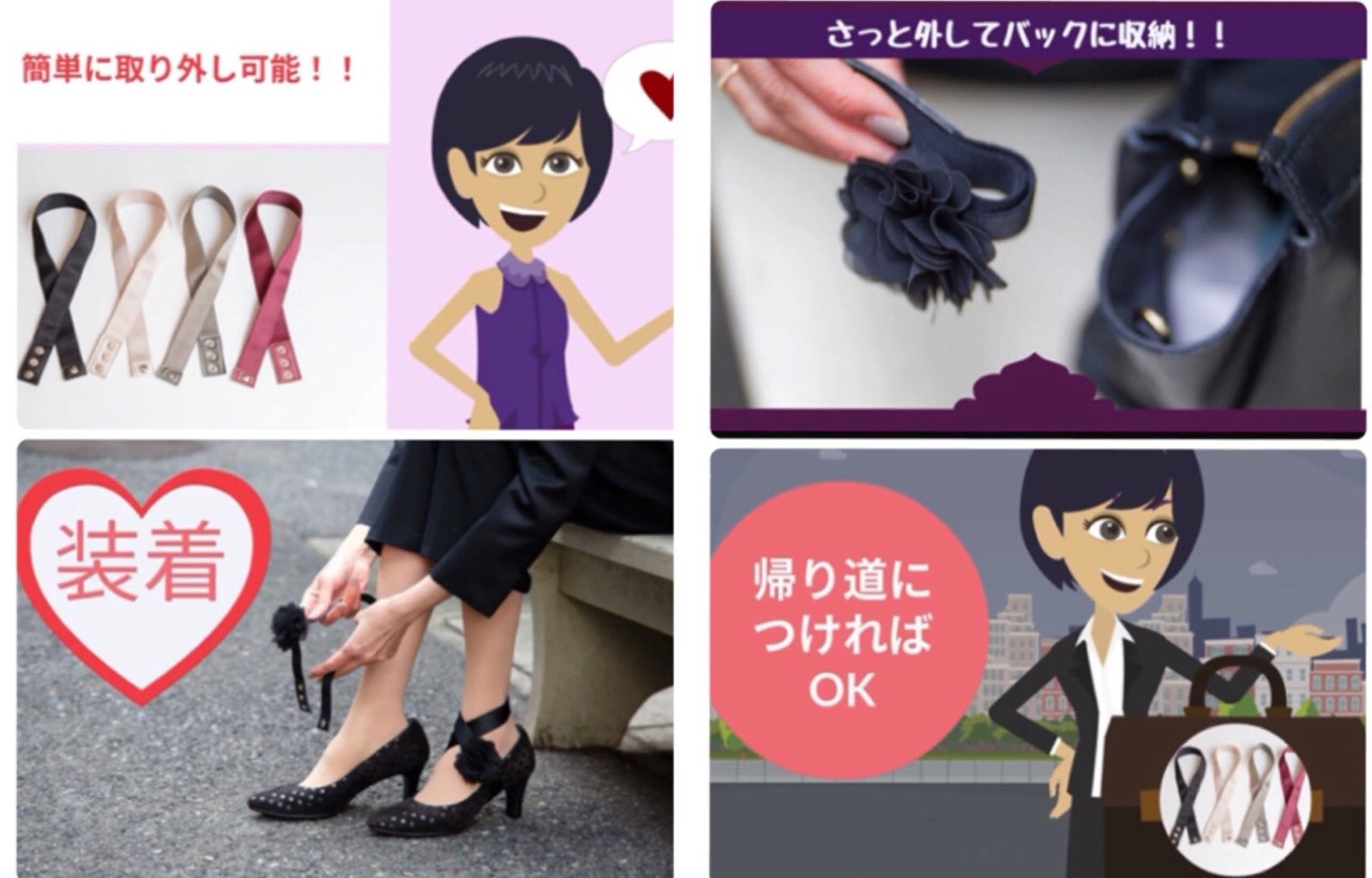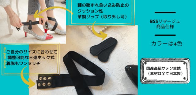 パンプスに悩む女性を救うために誕生した 全く新しいシューズストラップ<BSSリマージュ>です。私たちの願いは