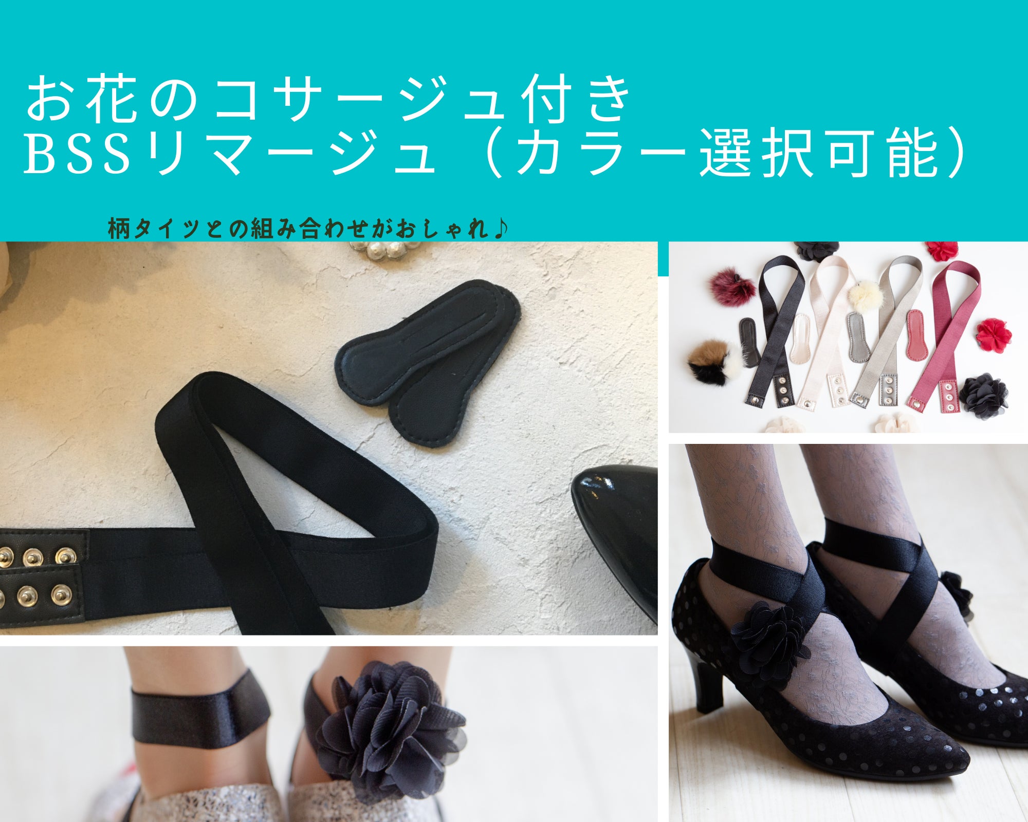 ✤お花コサージュ付き (シューズストラップペア+かかと靴ずれ防止リップペア +
