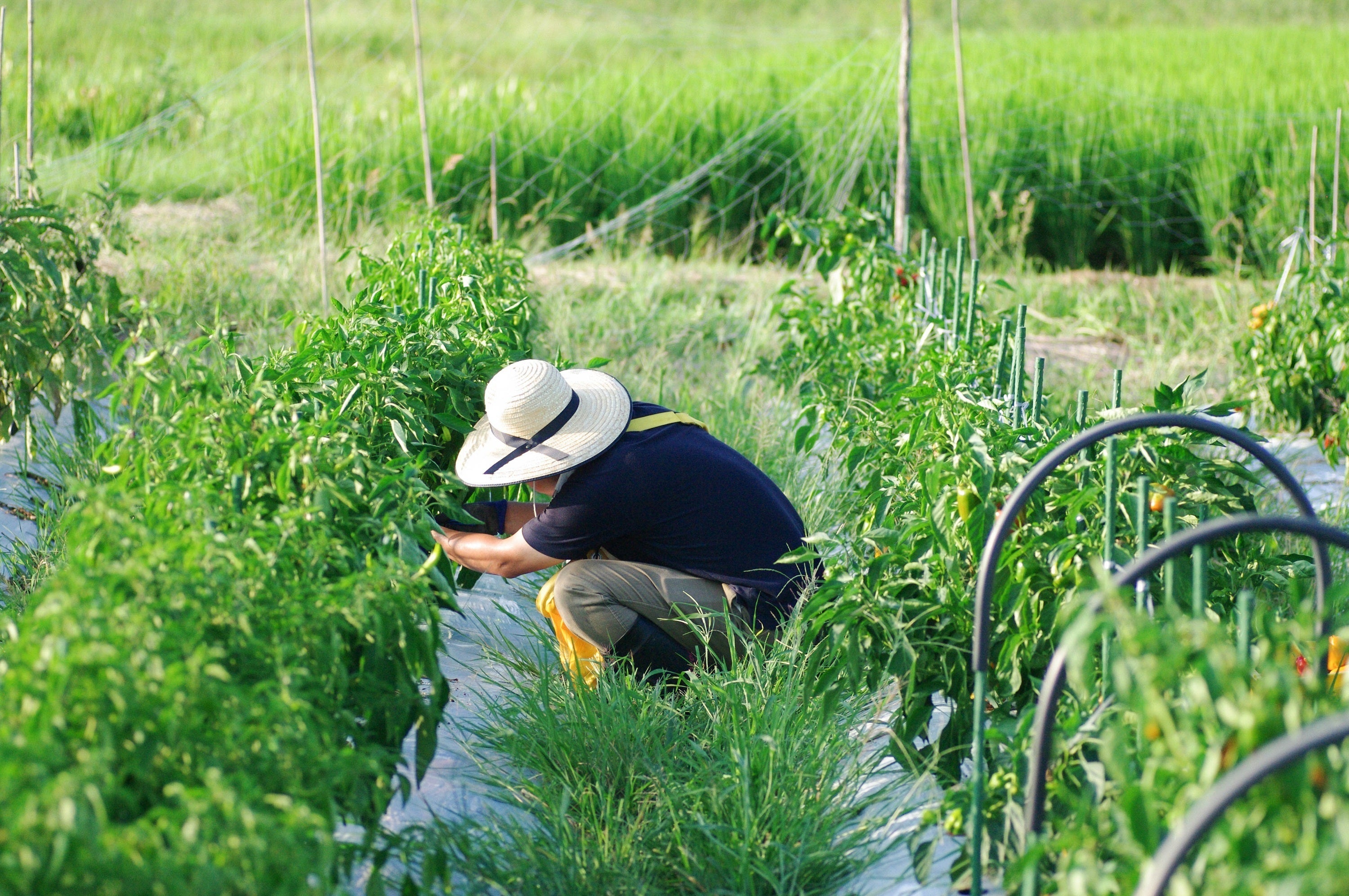 農薬・化学肥料不使用の畑での作業風景