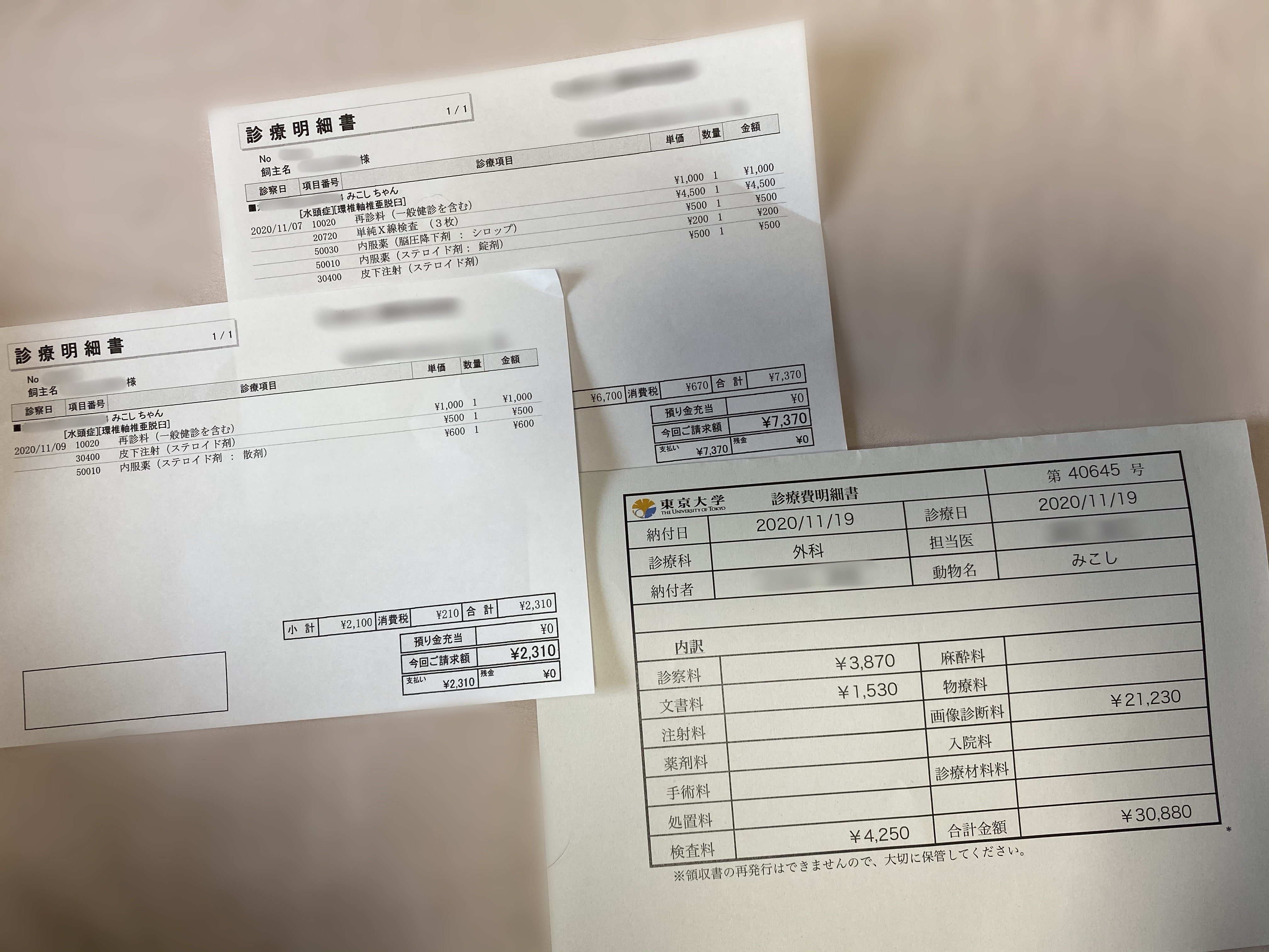 11/3 診察① 獣医師から「3日ほど様子を見て、変わらないようであればレントゲンを撮ります」とのこと
