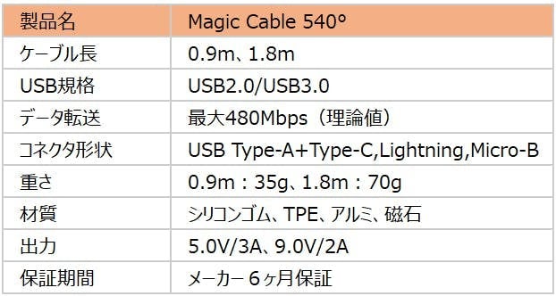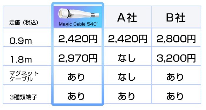 端子の接続部分だけでない利便性を追求。 ケーブル本体にも特許所有の「Magic Cable機構」を採用することで 今回の商品が誕生いたしました。