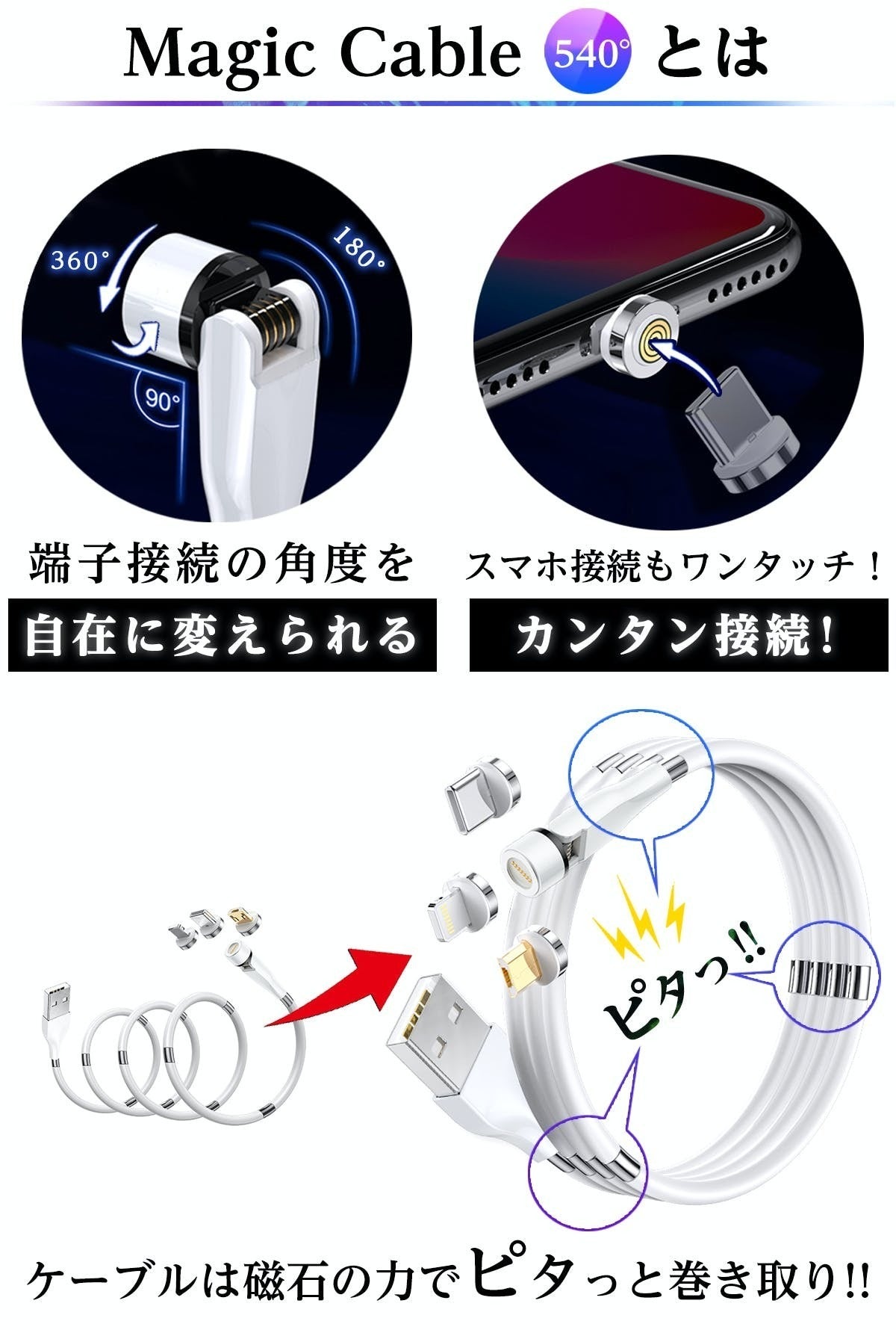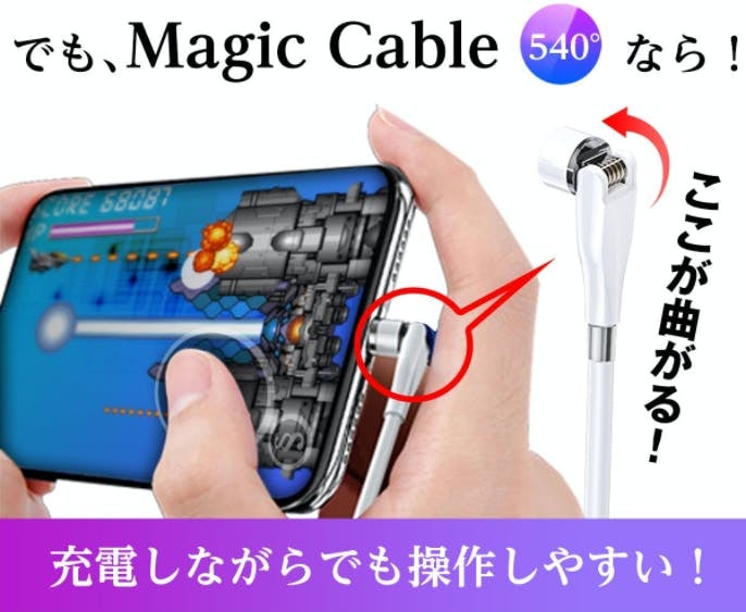 「Magic Cable540°」は『特許取得』の独創的な発想とデザインにより、充電ケーブルが絡まってしまう面倒さを解消します。