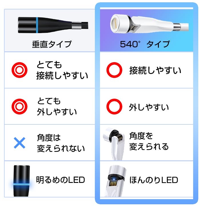 こちらもお好みが分かれる点になります 。垂直タイプは明るすぎるという声もあります。枕元に置く場合は「Magic Cable 540°」くらいの控え目の明るさが丁度良いかもしれません。