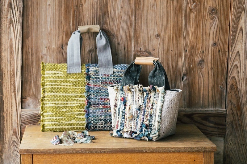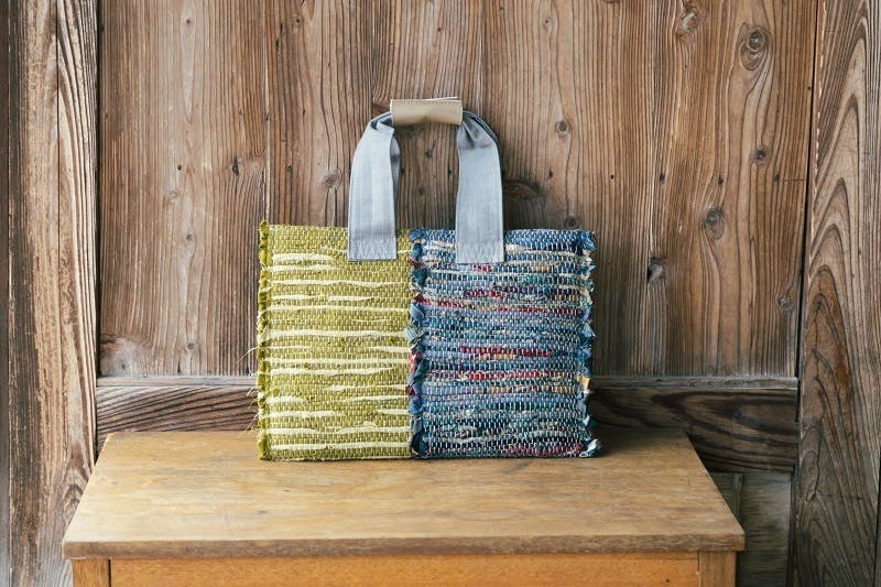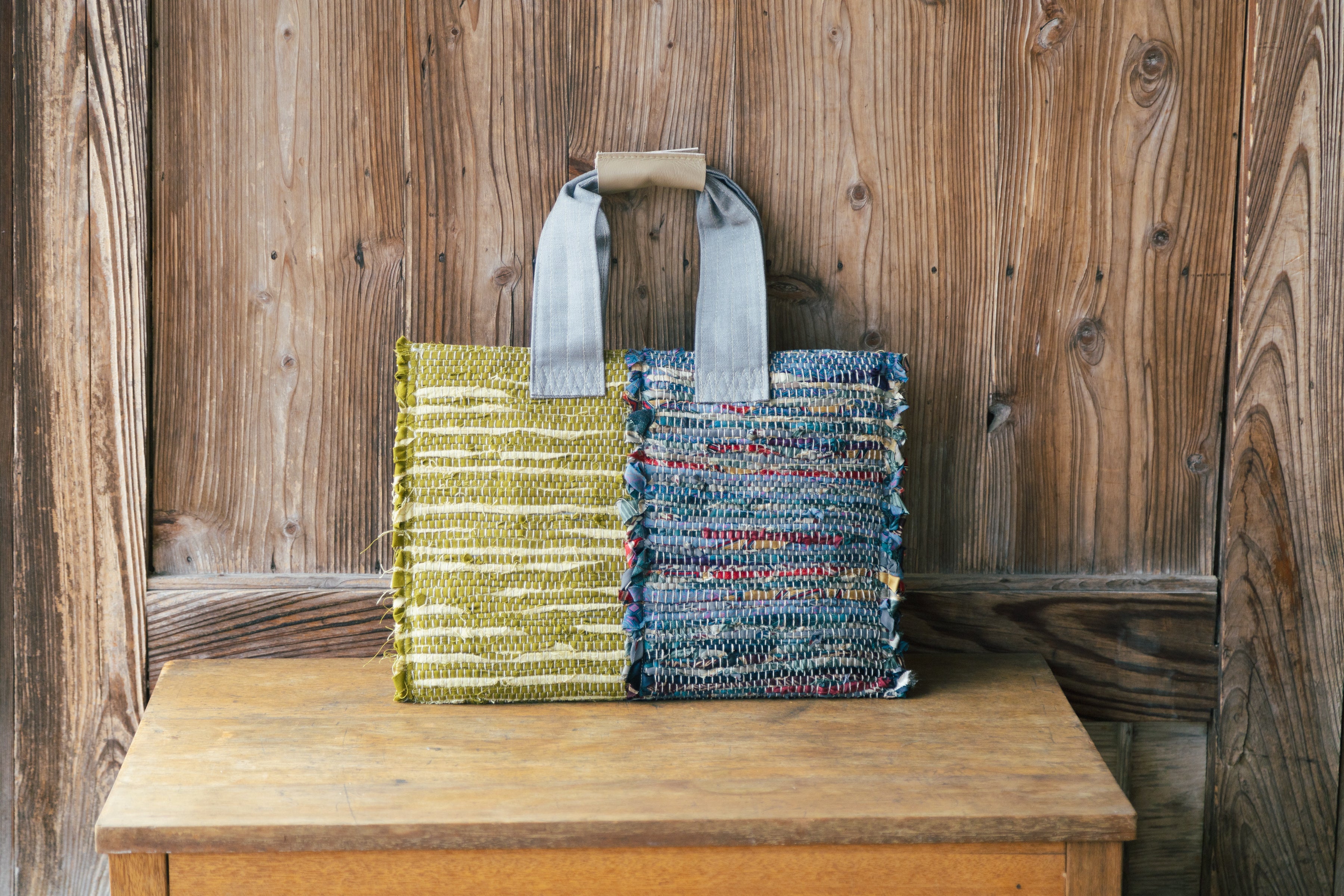 裂織り(さきおり)とは布を紐状に裂き(カットし)それを横糸として織ったものです。