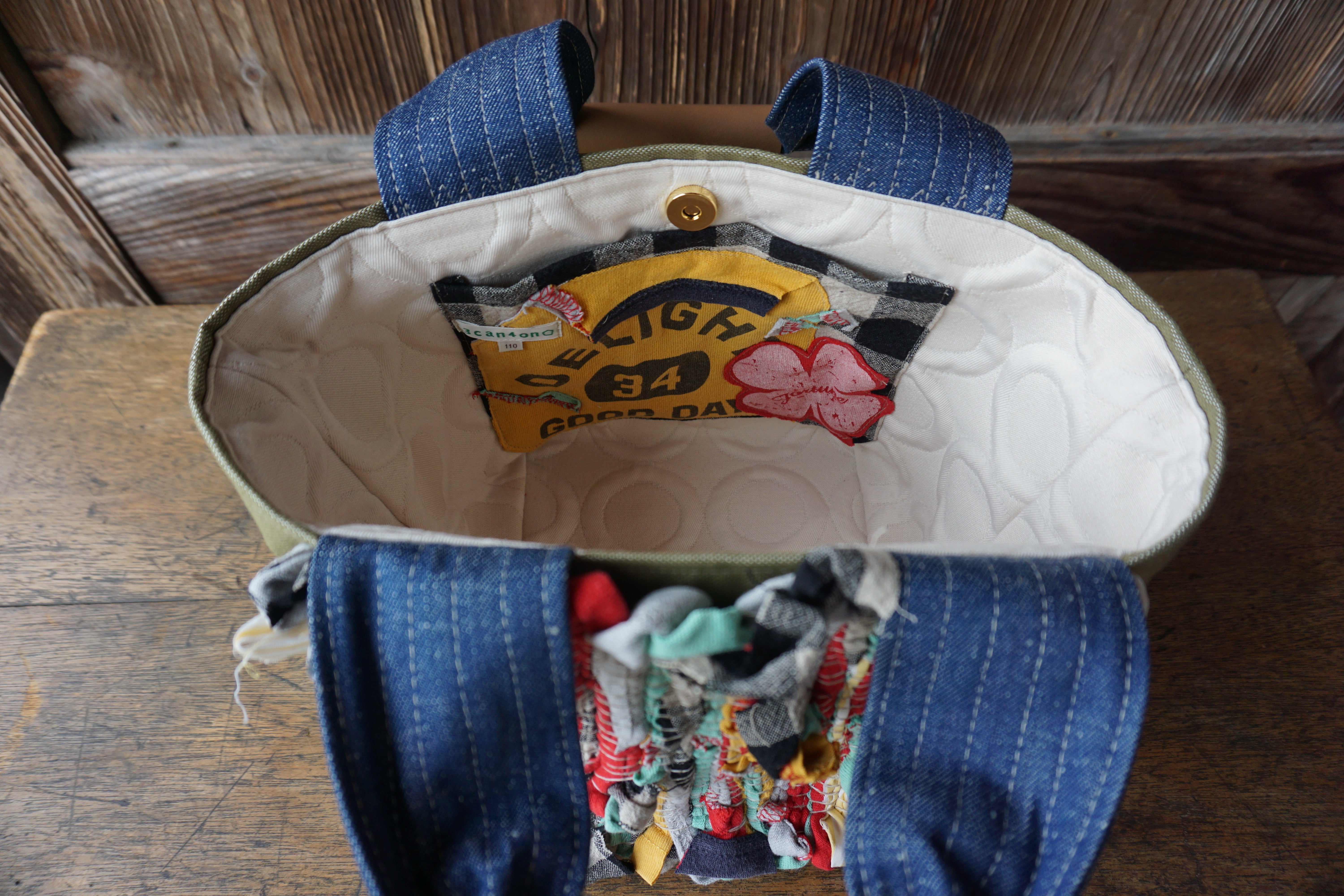 母が孫にと買ってくれた洋服。3人の子供達が順番に着て育ちました。そんな子供達も今ではすっかり大きくなり 元気に成長してくれている姿を見ると、それだけで感謝の気持ちでいっぱいになりました。bagの内側にまで想い出が沢山詰め込まれています。母がbagを見て 涙をうかべているのをみると、私も胸が熱くなりました。これからもずっとずっと大切に持ち続けたいと思います。