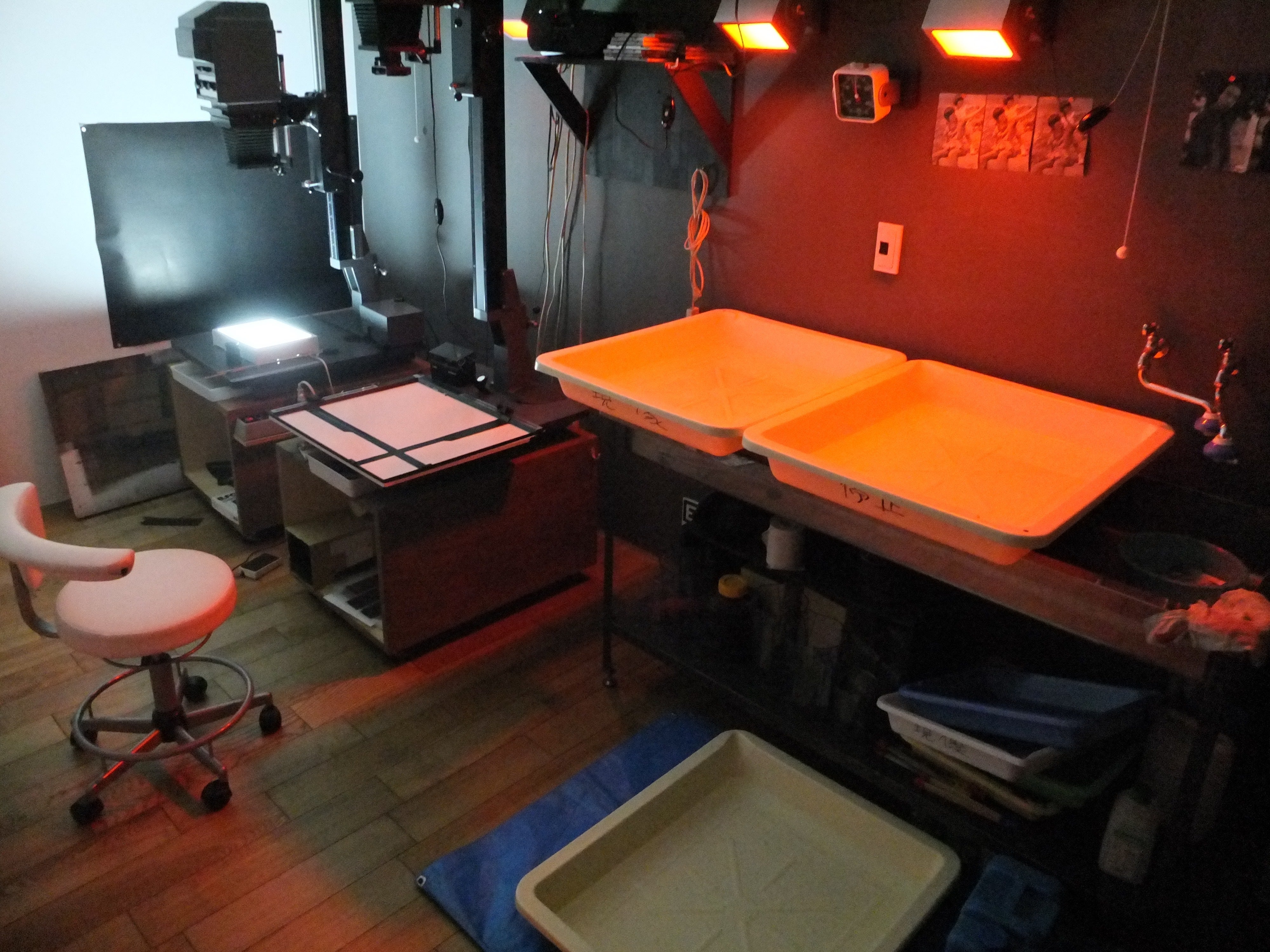 銀塩写真は、画像のような暗室でプリント作業を行います。これは自宅にある暗室ですが、暗室を持っている写真家も少なくなってきました。リターンのプリントは全部この暗室でプリントしています。銀塩写真の良さは継承されなくてはなりません。手焼きの写真の良さを、是非お手に取ってご確認いただければと思います。