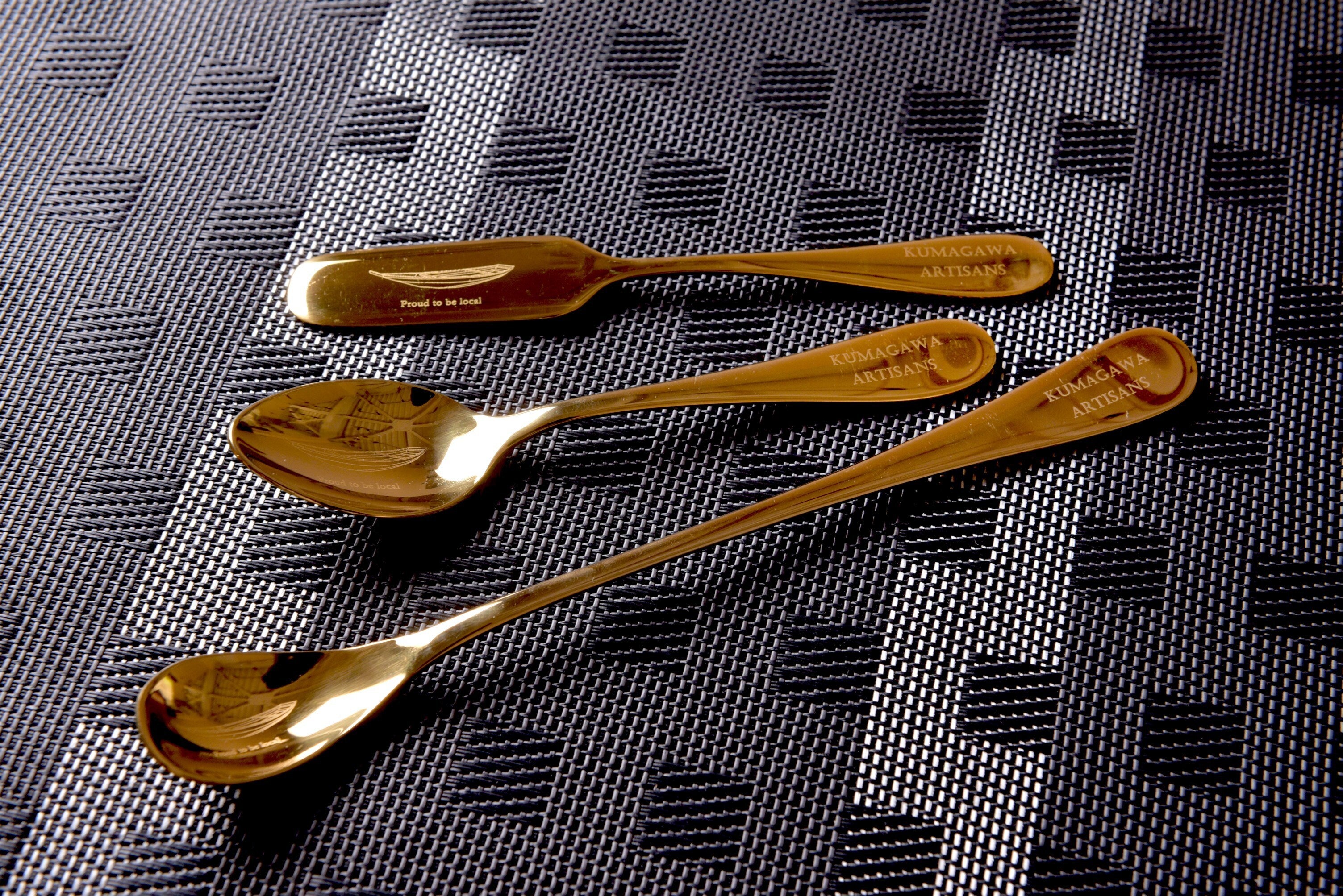 各カトラリーは、表面が非常に硬く、耐摩耗性に優れているため擦り傷がつきにくく、温かみのあるゴールド色は剥離しにくい仕様になっています。また、ステンレス用食器特有の「金気」と呼ばれる味や臭いの抑制効果にもこだわりました。