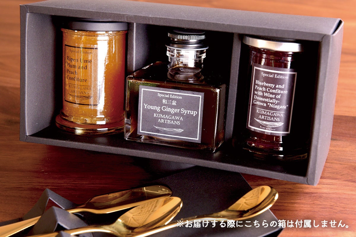 梅やショウガなど地元食材にこだわりを持ち、日本の地方には深刻な人口減少という問題をかかえつつも、こんなにおいしいものがあることをみなさまにお伝えできるように準備しました。瓶のサイズにピッタリなカトラリーセットもご用意。日本の伝統が詰まった逸品をぜひお楽しみください!