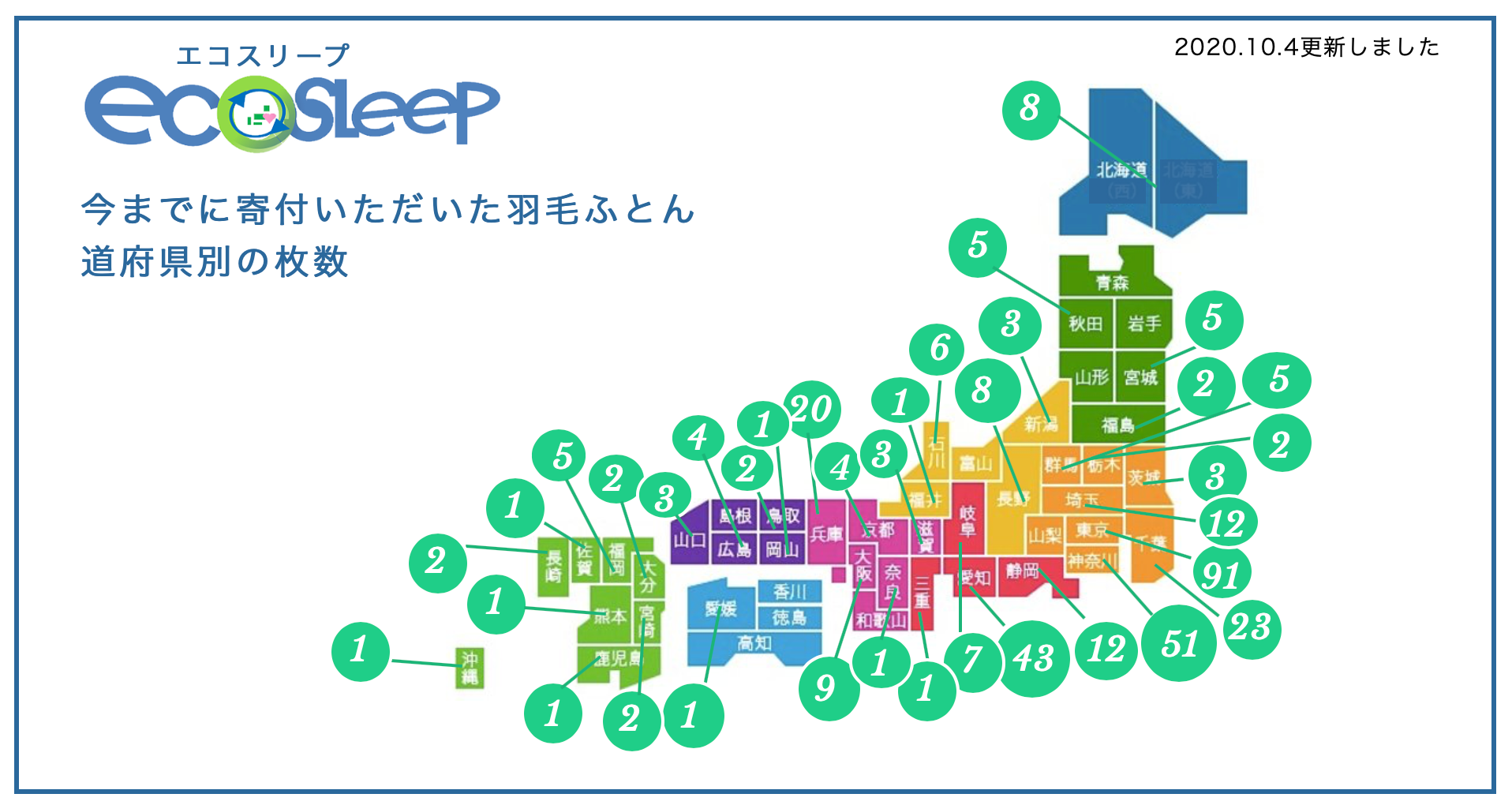 活動を始めて2年半。今では、日本全国41都道府県からふとんが届いています。
