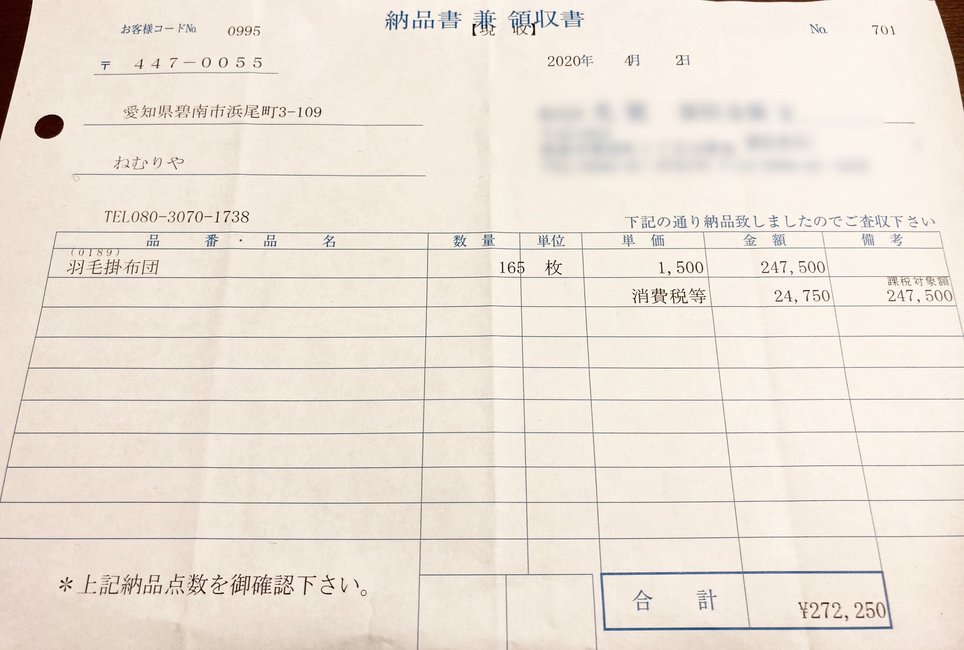 ・羽毛ふとん用のケース代 4万円