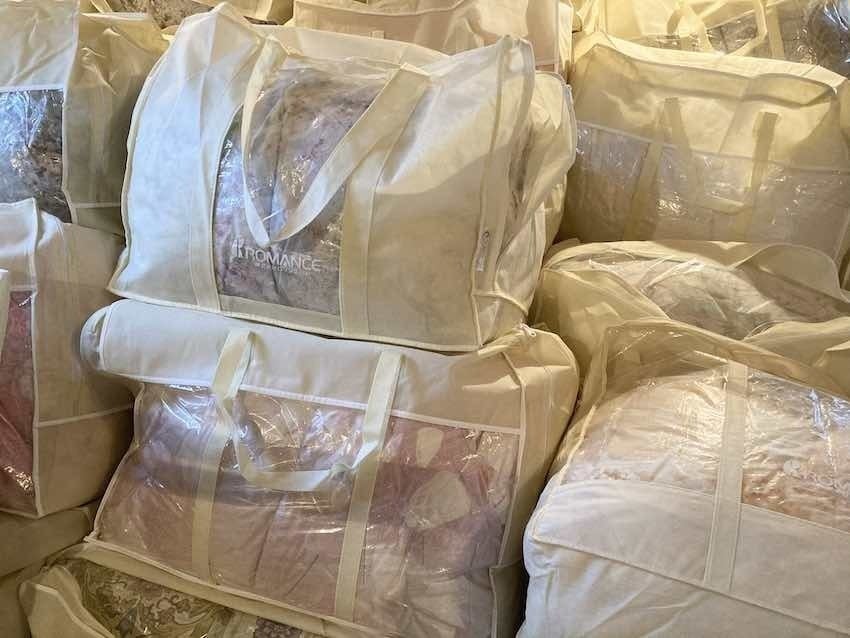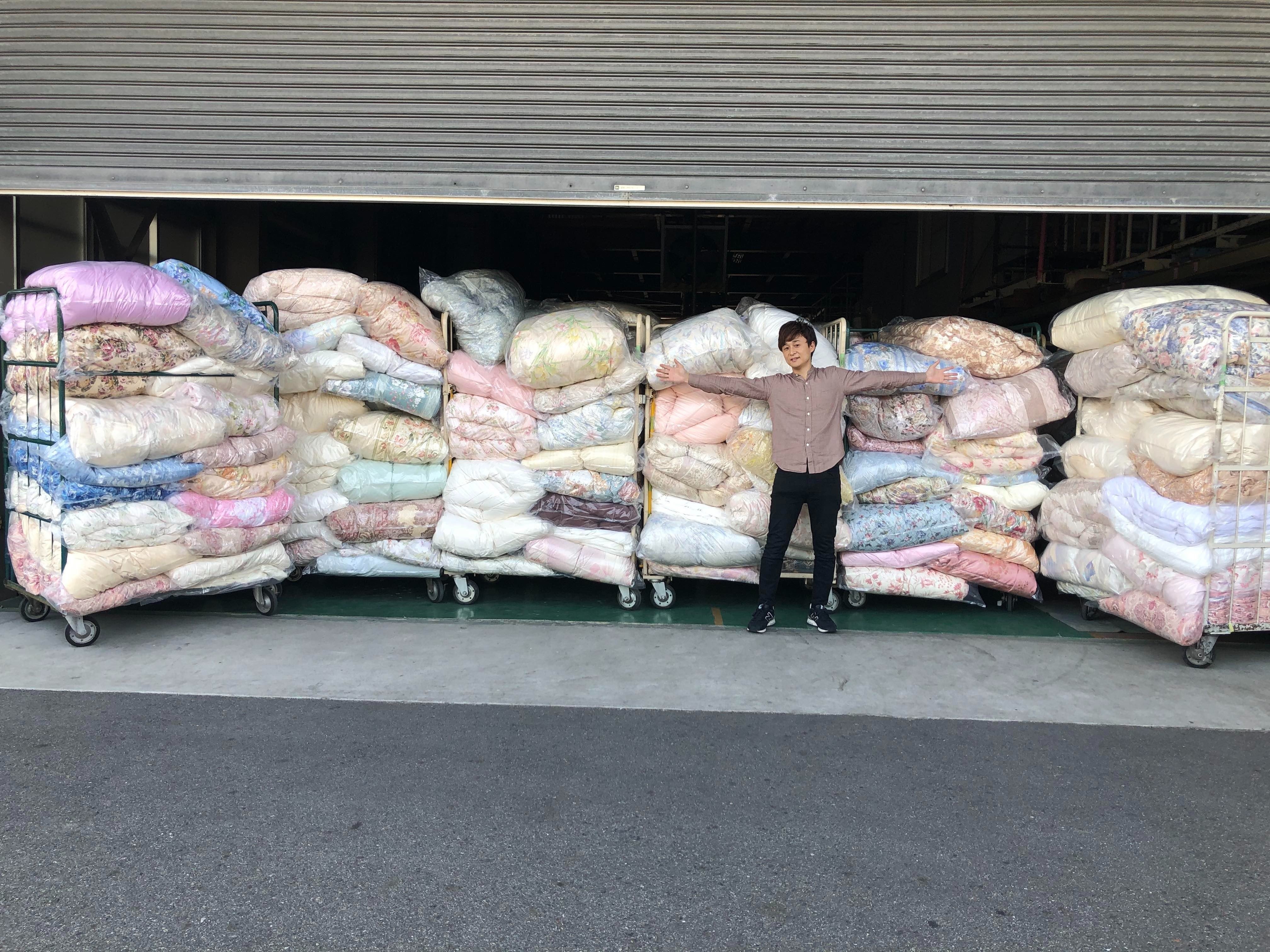《100枚寄付プロジェクト》のため、状態のいい羽毛ふとんを今年の4月に100枚以上クリーニングに出しました。