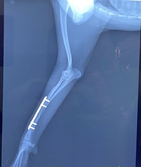 骨が少しずつくっついていて年明けには写真のように入っているボルド2本が取れる予定です。先生からも歩き方や体重のかけ方、筋肉量は問題ないとのことだったので一安心しています。