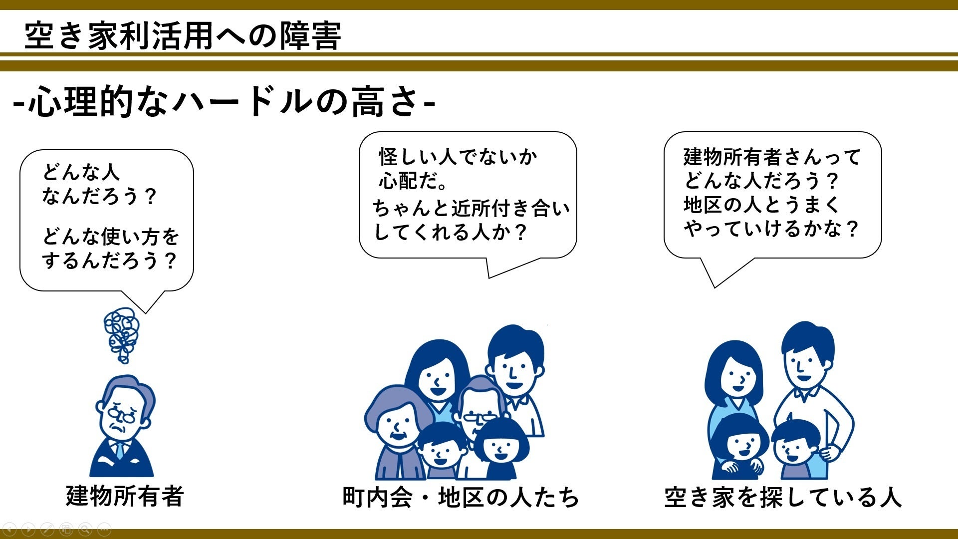 空き家を実際に誰かに譲るまでには、さまざまな心理的ハードルがあります。