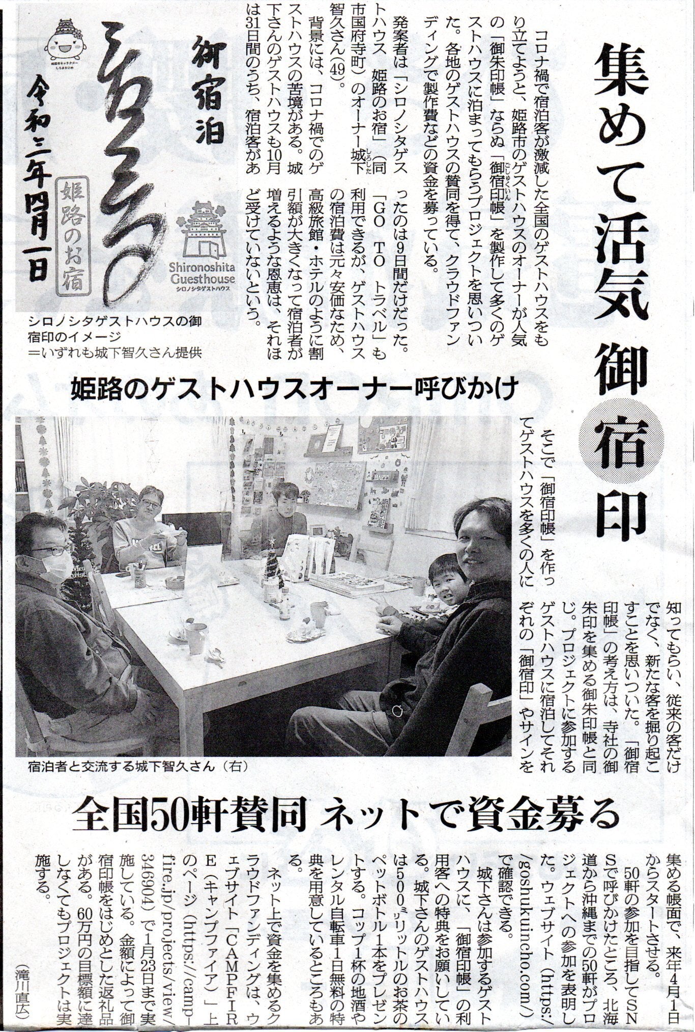 今日(12月21日)の朝日新聞の朝刊に御宿印帳プロジェクトの記事が掲載されましたので、報告致します。