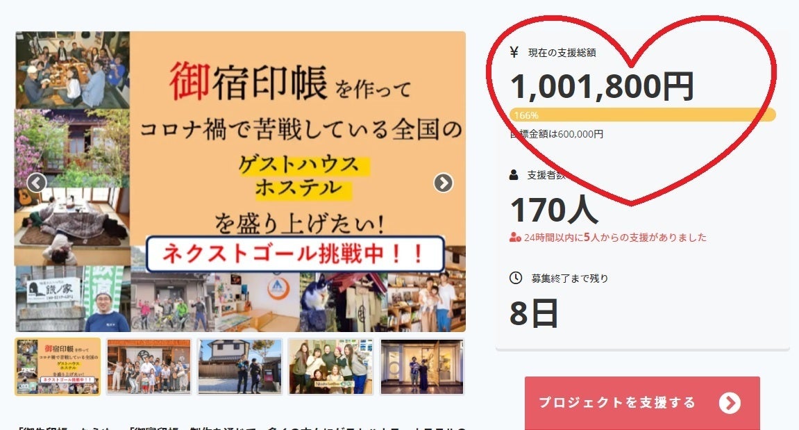 昨年の12月19日に始めさせて頂きました、御宿印帳のクラウドファンディング、ネクストゴールの100万円に昨日の夜、到達致しました!