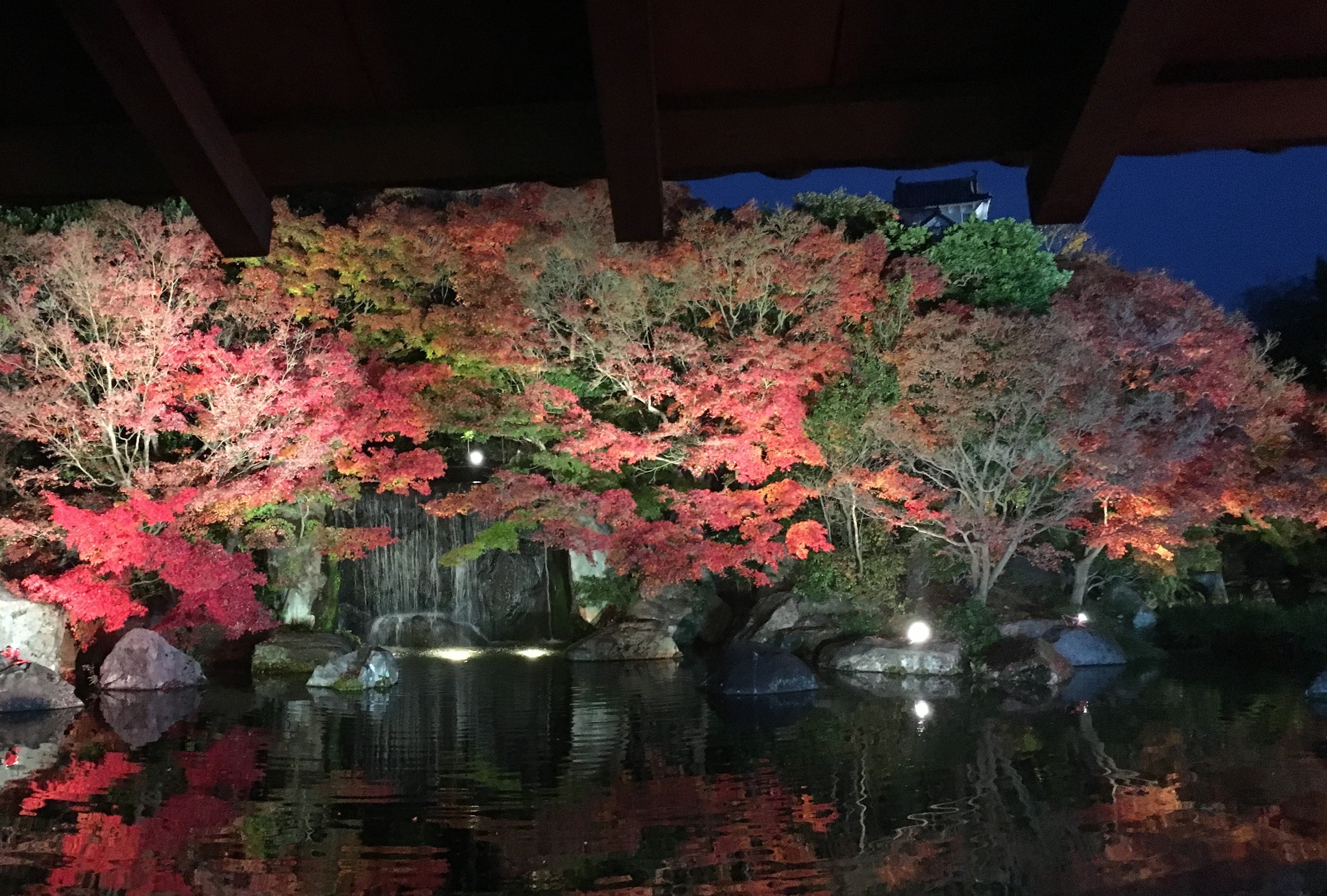 ※写真は姫路城のそばにある日本庭園、好古園のライトアップです。通常は昼間のみの営業ですが、紅葉の時期は夜もやっていてとても美しいです。