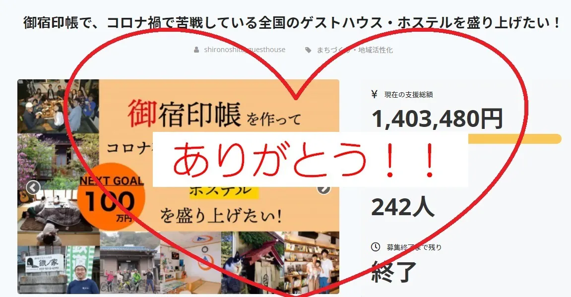 先ほど、無事に御宿印帳のクラウドファンディングが終わりました。