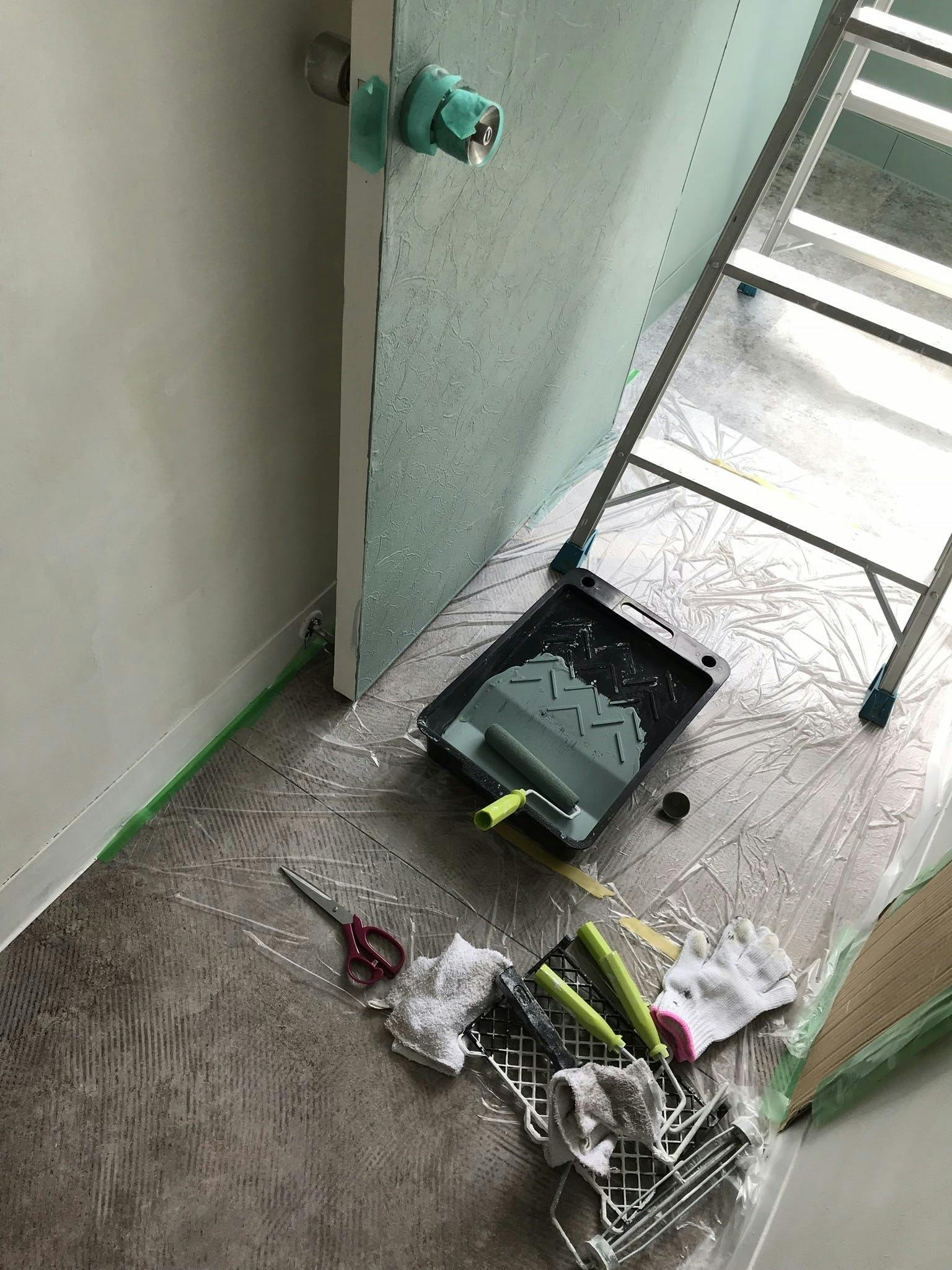 中央の壁を業者さんに壊していただくと同時にDIYで壁を塗りなおし