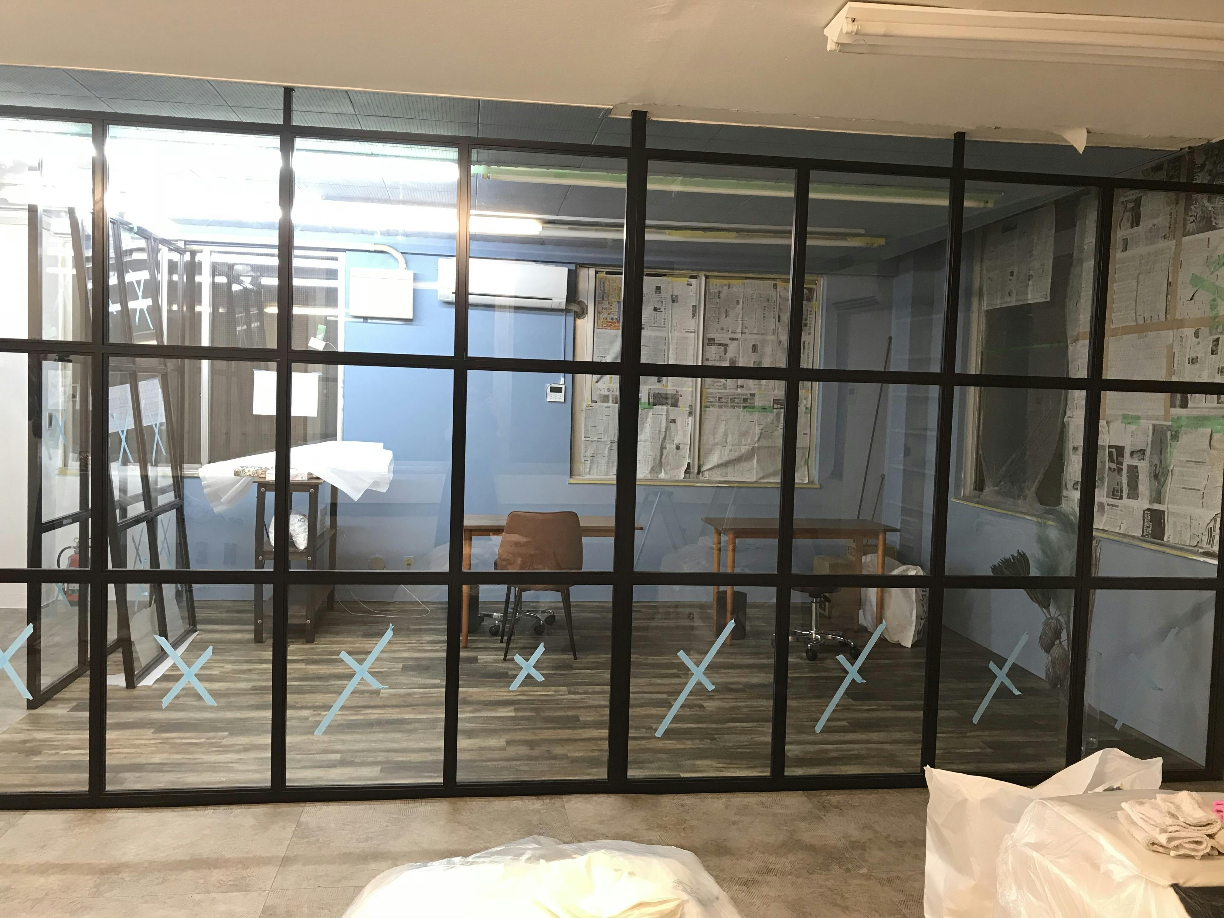 ガラスパーテーションと床は業者さんにお願いしましたが他はだいたいDIYで完成です。