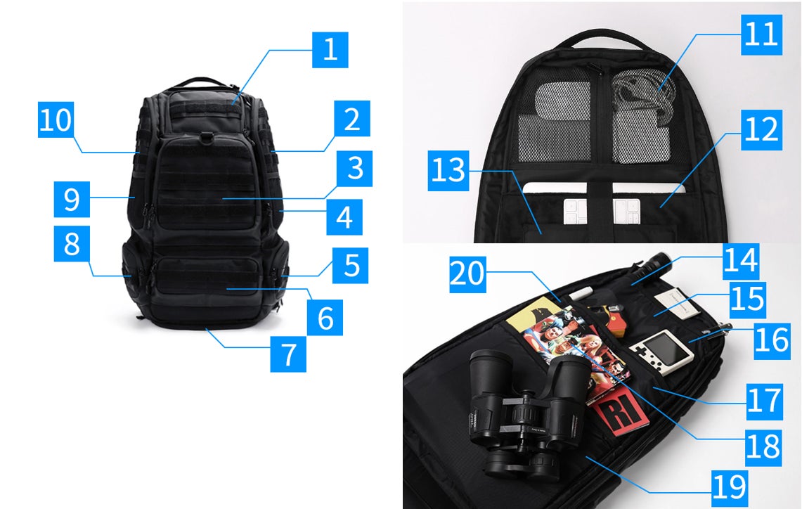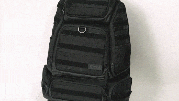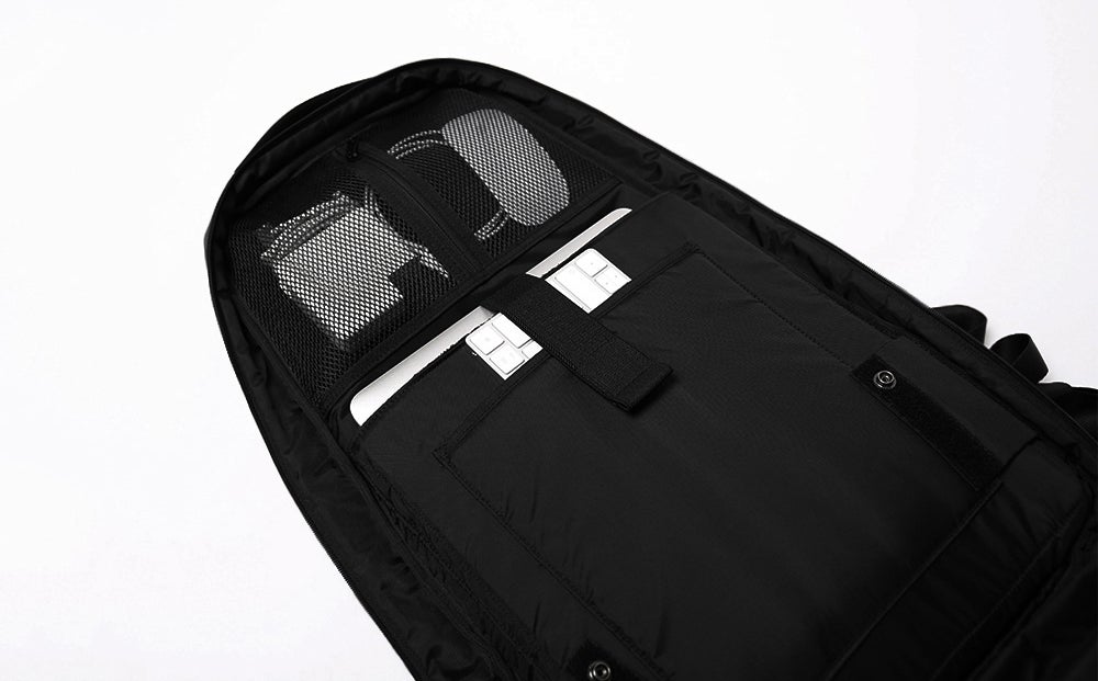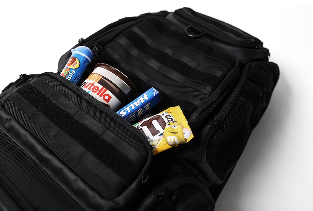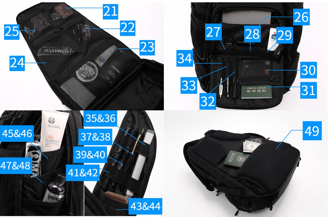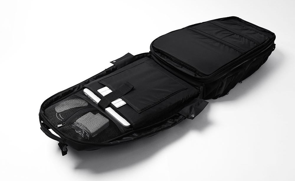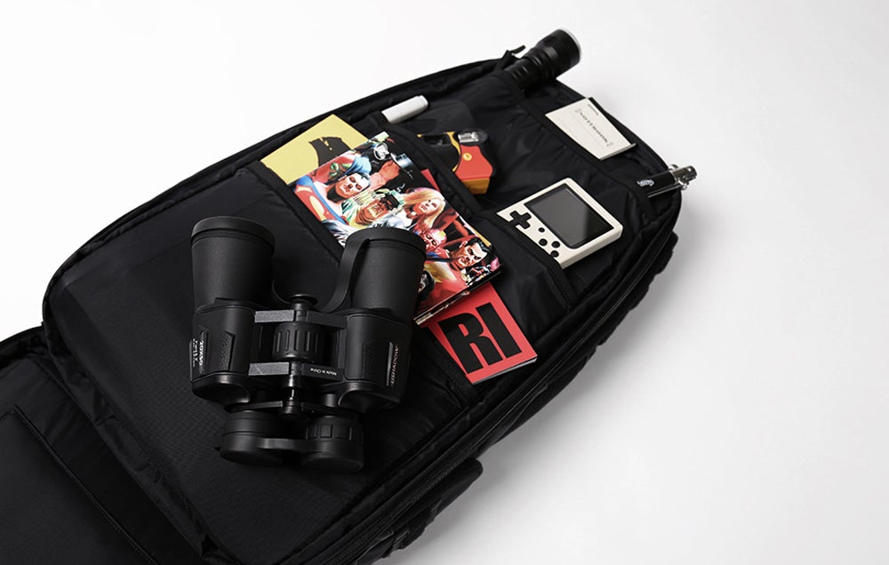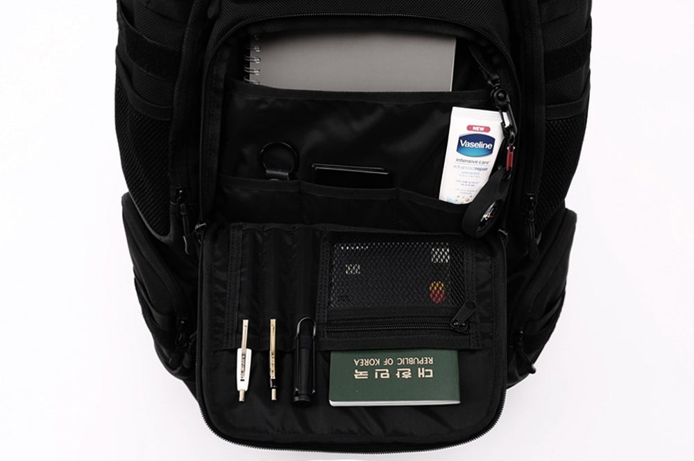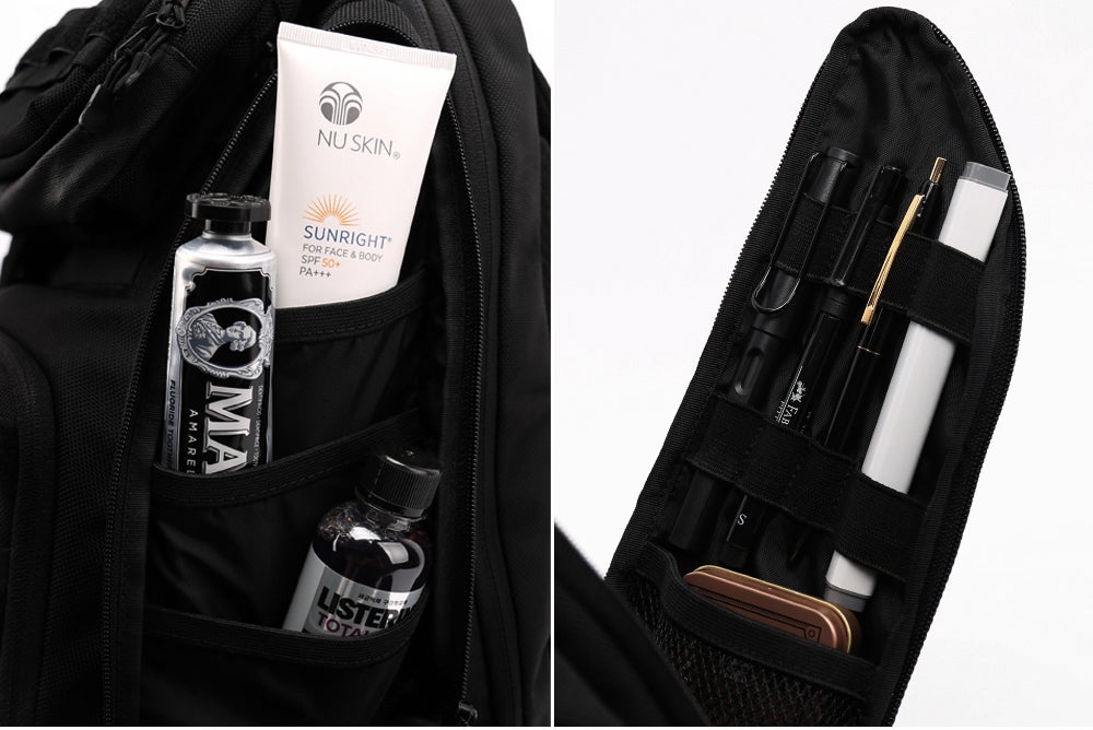 →プライムバックパックは 大小異なる機能的なポケットを58ポケット用意しています。必要な物は入れるだけで整理整頓されます。