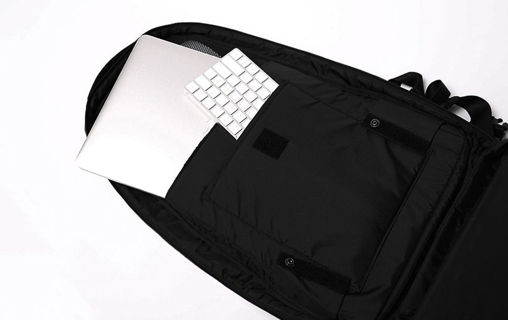 ノートパソコンポケットはMacBook基準17インチまで収納が可能で、ベルボア生地と補強材が内蔵されており、高度な電子機器を安全に保護し、傷を防止します。