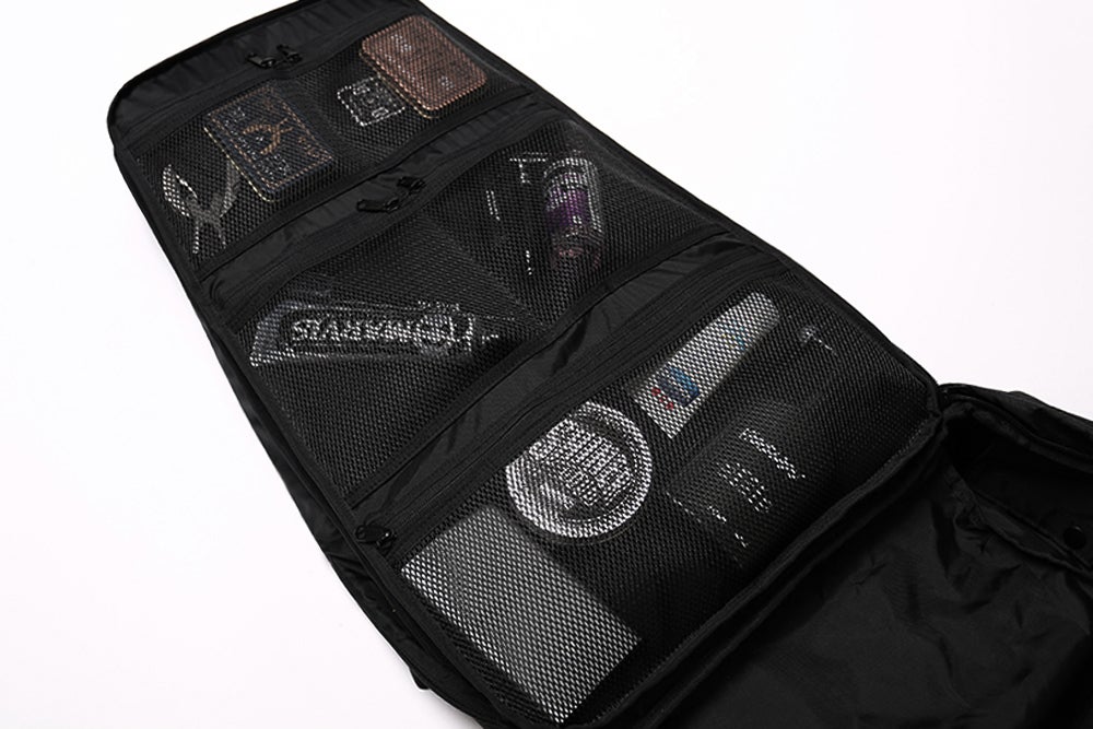 ノートパソコンの周辺機器を収納できるように上端部にメッシュポケットが構成されています。