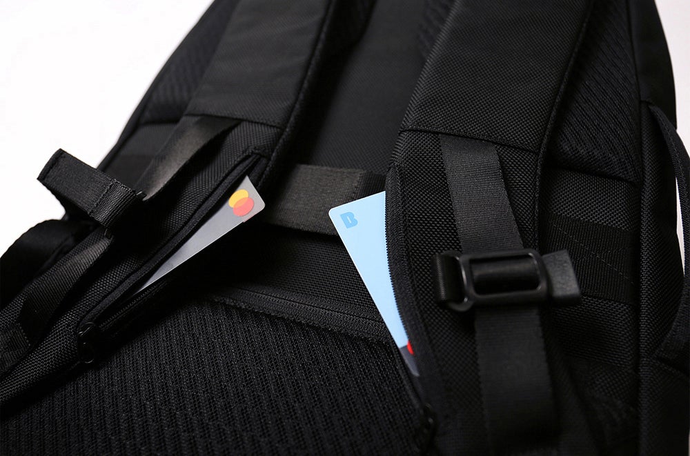 ショルダーストラップ にもカードが収納できる隠しポケットが付いています。