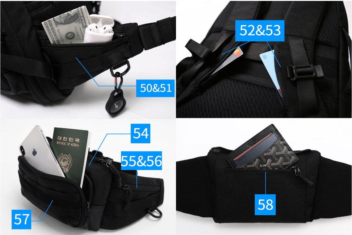 58個の機能的なポケットは、必要な時に必要な物が簡単に取り出せるように設計されています。