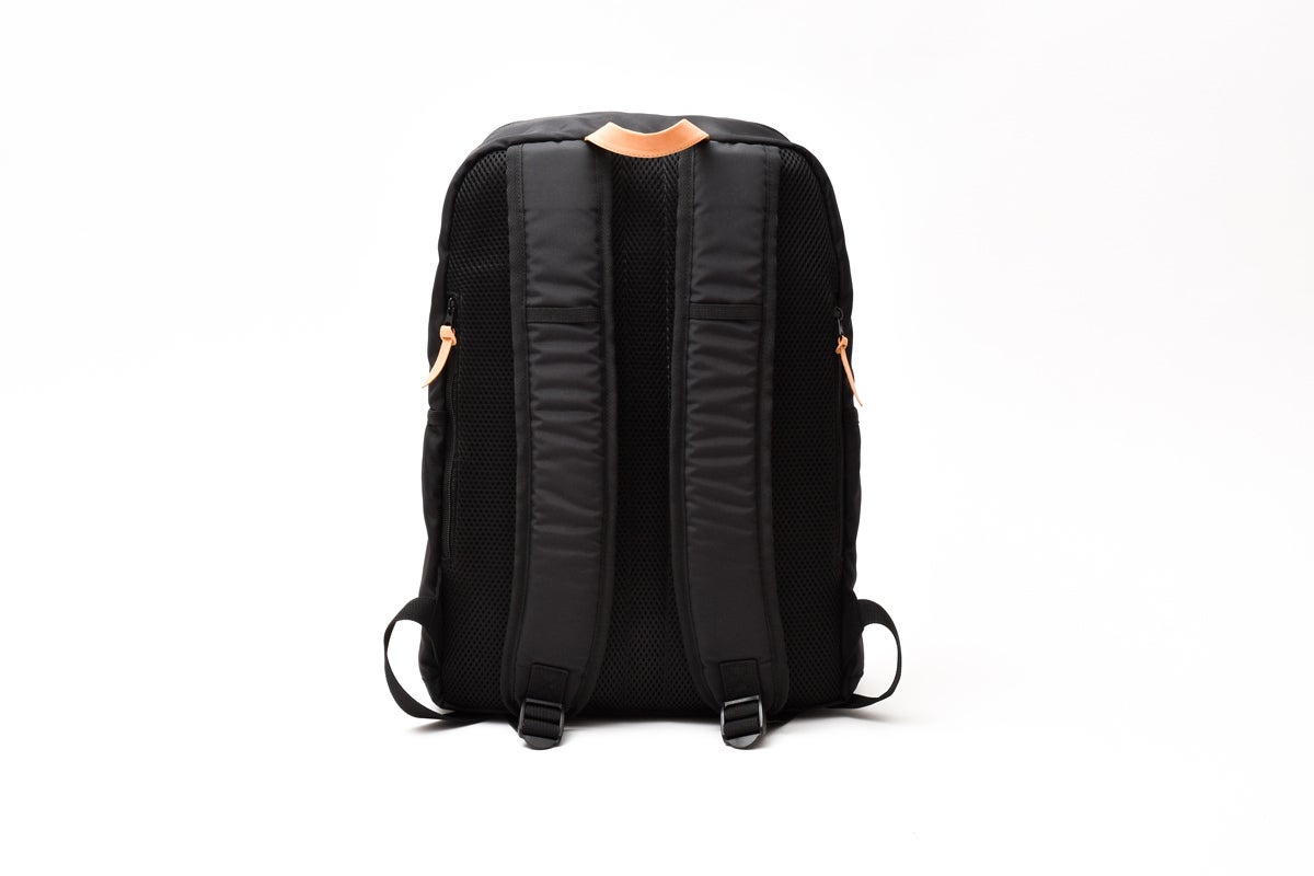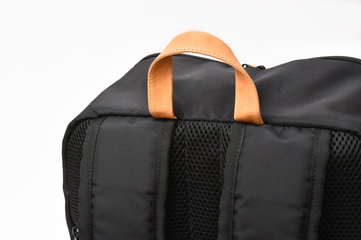 シンプルな外観・背面はクッション性も高くメッシュ素材で蒸れ防止にも