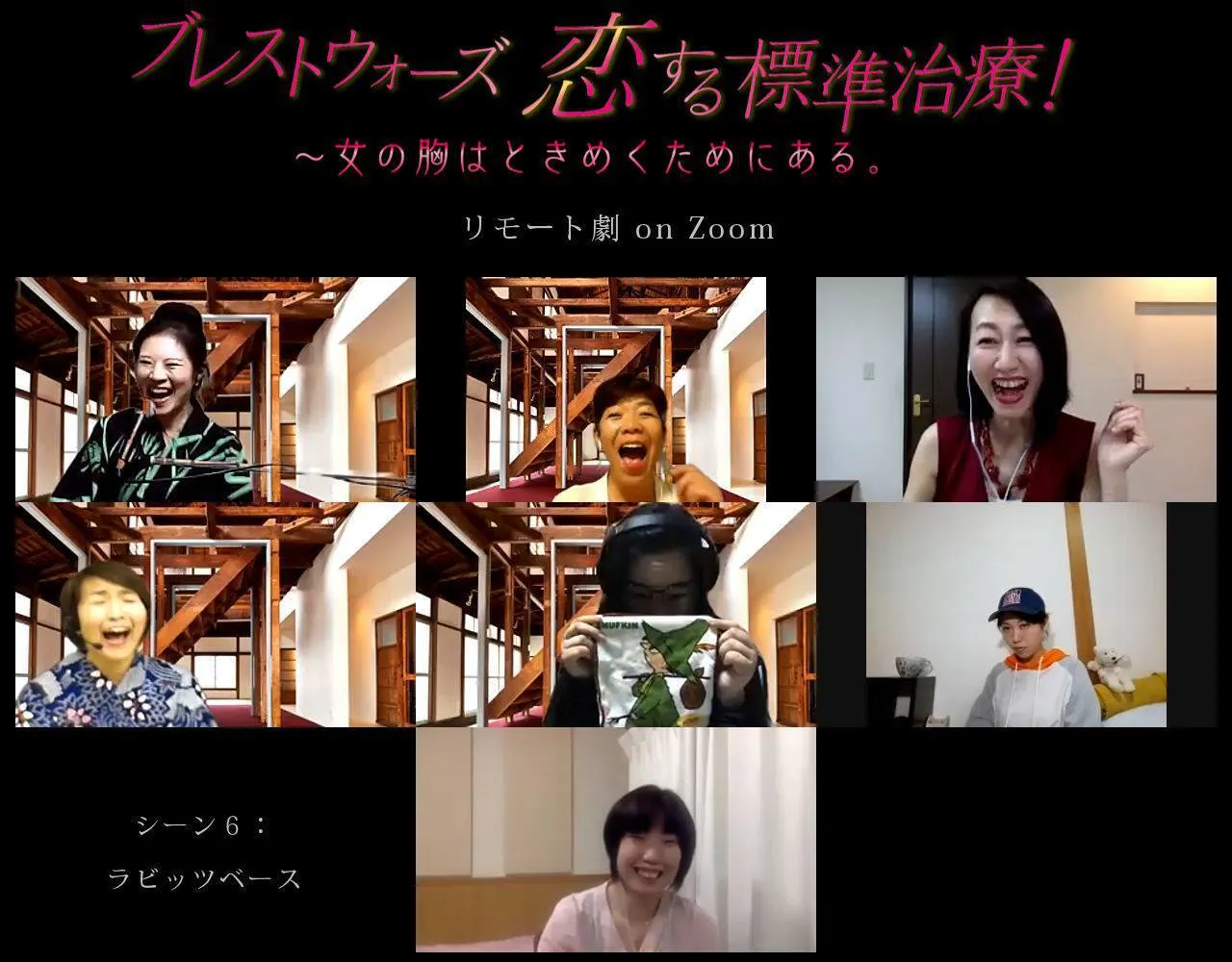 ブレ恋!Zoom劇に患者役で出演された乳がんサバイバーの古屋サマンサ恭子さん。(写真上段右端)