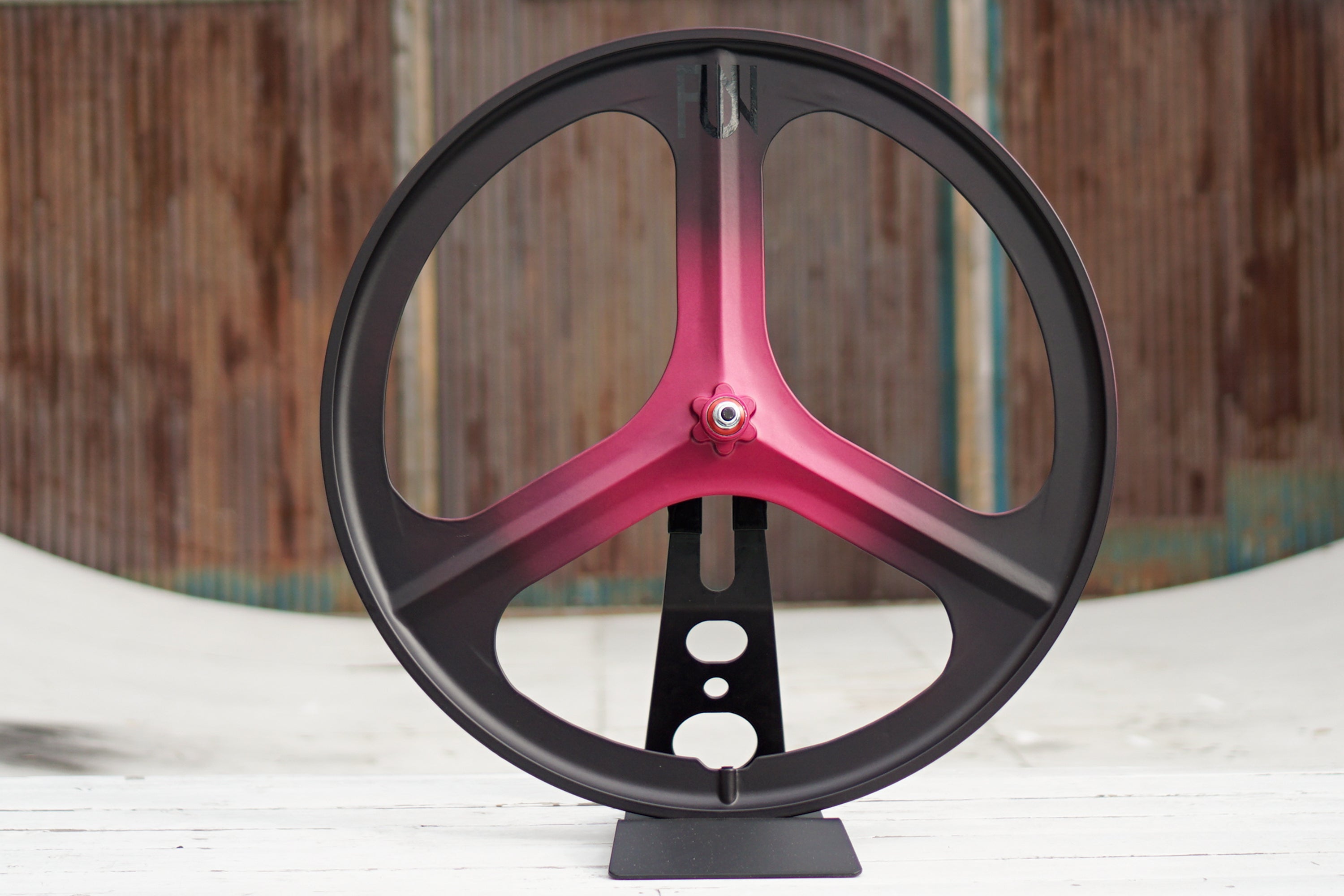 3本のバトンホイール(※スポークのないタイプのホイールの事です)は、面が広いのでカラーオートクチュールされる方に人気です。映えますね!